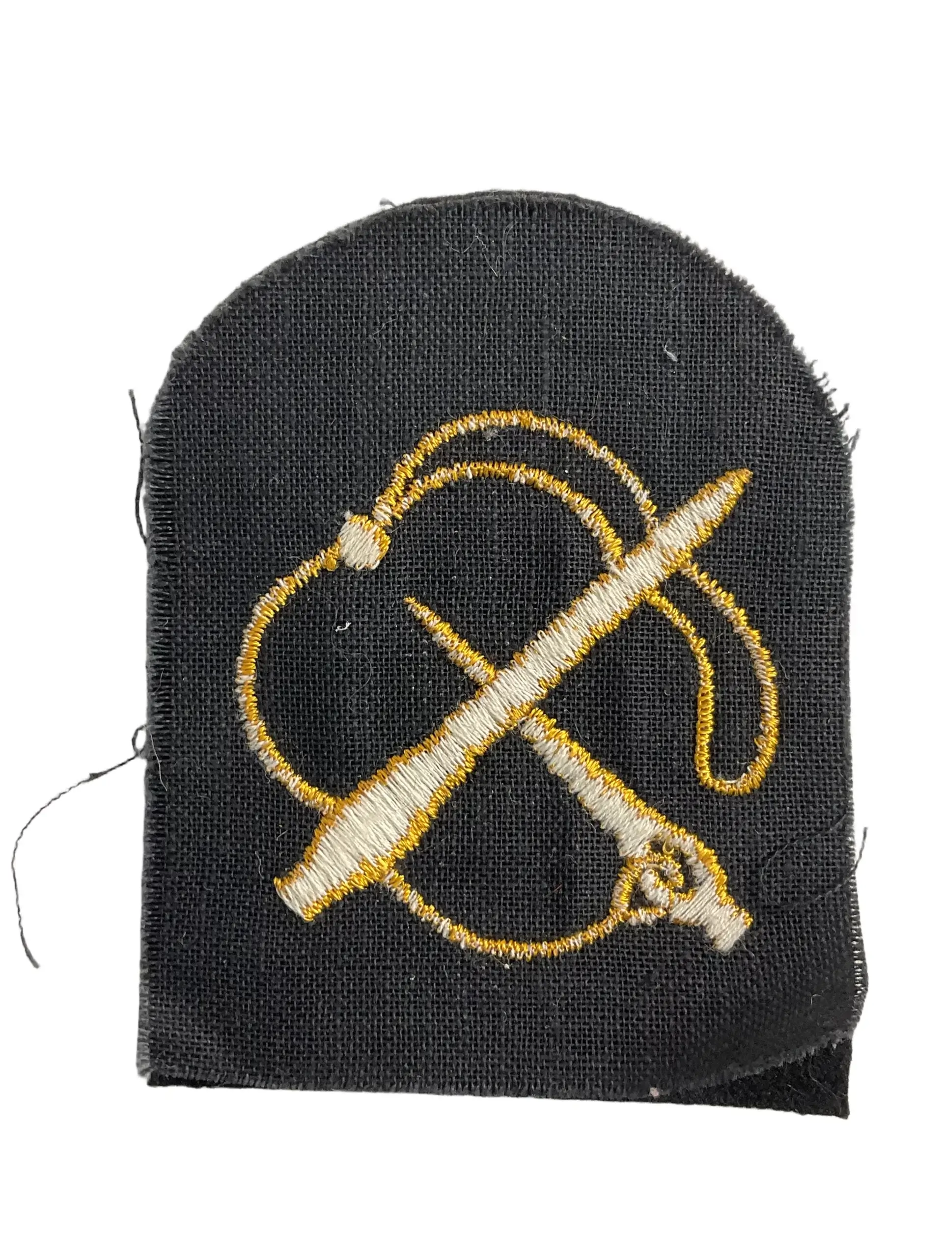 The WW2 Canadian RCN Navy Sailmaker Trade Patch is an original insignia issued to members of the Royal Canadian Navy during the Second World War. This embroidered patch signified qualification and service in the sailmaker trade, a specialty responsible for fabricating and repairing canvas, sails, awnings, and other essential textiles used aboard naval vessels. The patch typically features a distinctive design, often incorporating symbols such