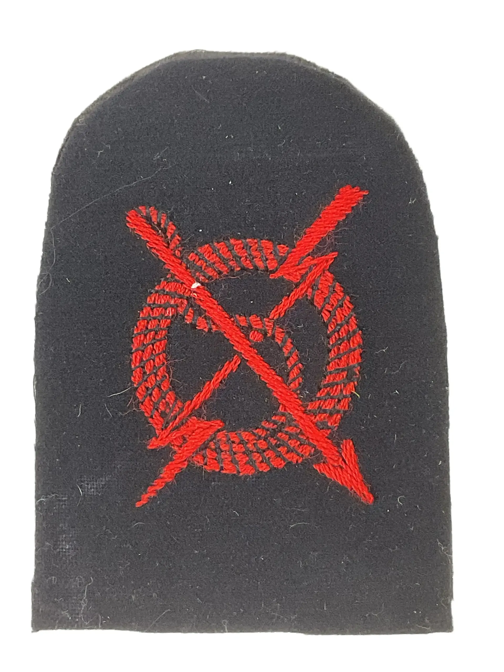 The WW2 Canadian RCN Navy Submarine Detector Trade Patch is a historical military insignia issued to members of the Royal Canadian Navy during the Second World War. This patch was awarded to naval personnel who qualified as submarine detectors, a specialized role focused on identifying and tracking enemy submarines using advanced sonar and listening equipment aboard Canadian naval vessels. The design typically features a stylized depiction of sound waves or sonar motifs, embroidered onto a dark naval wool background, signifying the expertise of the wearer. Submarine detectors played a vital role in anti-submarine warfare efforts throughout the Atlantic campaign, contributing significantly to convoy protection and naval operations. The patch represents both technological advancement and the development of specialized skills within the RCN during the conflict. It remains a notable collectible for its association with naval warfare history and the broader context of Canada’s contributions to Allied maritime strategy in the Second World War.