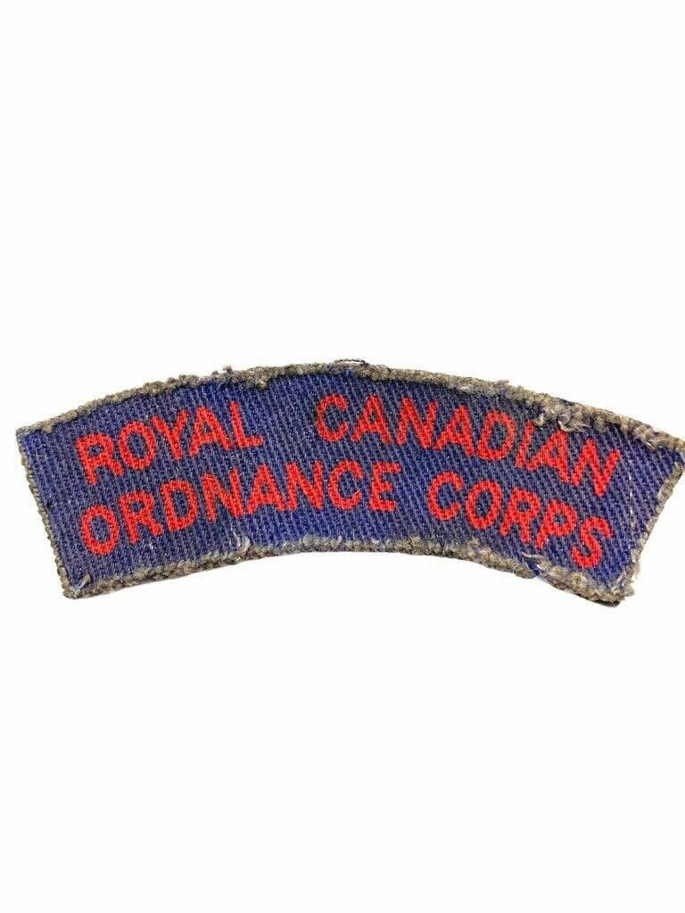 This unique artifact is a World War II-era canvas shoulder title from the Royal Canadian Ordnance Corps (RCOC), reflecting its rich history and proud service. The RCOC was responsible for the supply and maintenance of all weaponry, equipment, and munitions for the Canadian Army. This shoulder title, once worn by RCOC personnel, is a piece of military insignia that would have been displayed on the uniform to identify the corps’ members. The item shows signs of use, contributing to its authenticity and historical value. This shoulder title is a tangible reminder of the essential logistical support roles that kept the armed forces operational during the war. Collectors and history enthusiasts alike would find significant value in this piece, not only as a collectible but also as a tribute to the brave individuals who served within the Royal Canadian Ordnance Corps. This artifact stands as a testament to the essential backbone that logistics and ordnance services provided during WW2.