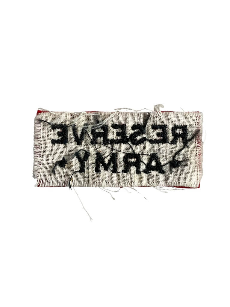 This item is a World War II Canadian Reserve Army patch insignia. The patch was worn by personnel serving in the Reserve Army, which functioned as Canada’s home defence and training force during the Second World War. Designed to be sewn onto the uniform, the insignia typically features distinct color combinations and shapes that identify unit affiliation and branch. Materials commonly used include wool or felt, and the patch is