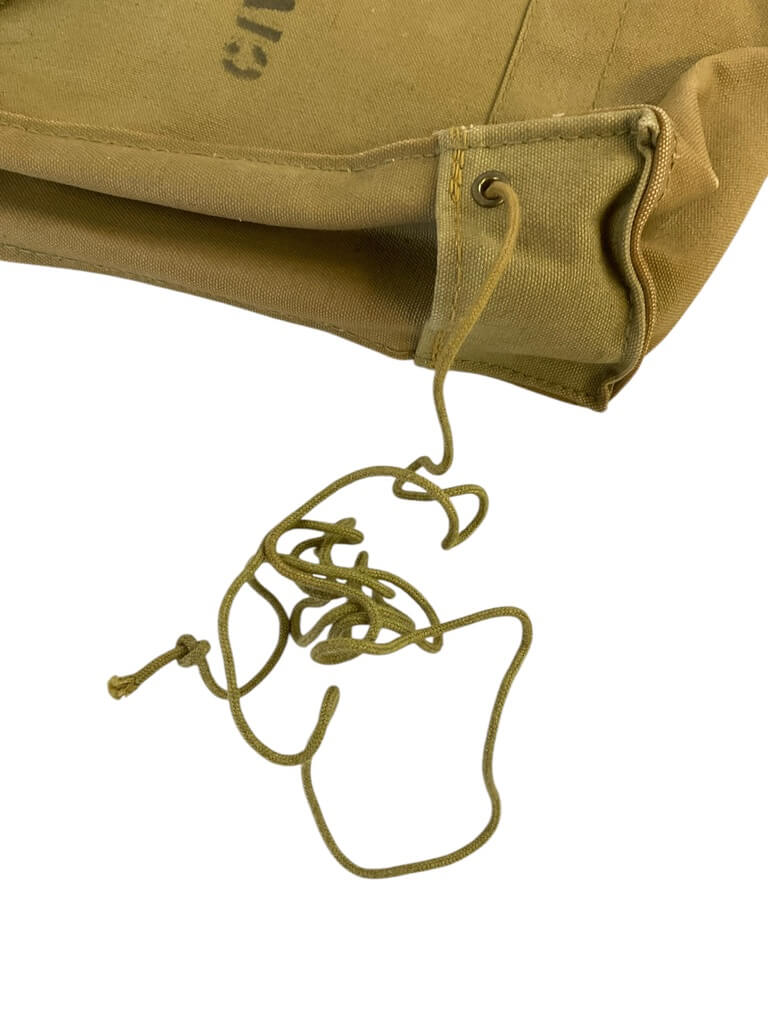 This item is an authentic WW2 Canadian Respirator Bag, a historic piece from Canada’s Civil Defence during 1942. The bag, intended for carrying a gas mask, is a rare find in mint condition, preserving the texture and look of the era. It bears the broad arrow symbol, a traditional marking used by the British Commonwealth to denote government property, confirming its original use. The date stamp of 1942 on the bag indicates the crucial time during the Second World War when Canada was actively participating in the global conflict, providing a tangible link to this significant period in history. This respirator bag is not only a collectible military item but also a historical artifact that symbolizes Canada’s commitment to the war effort and the resilience of its people.
