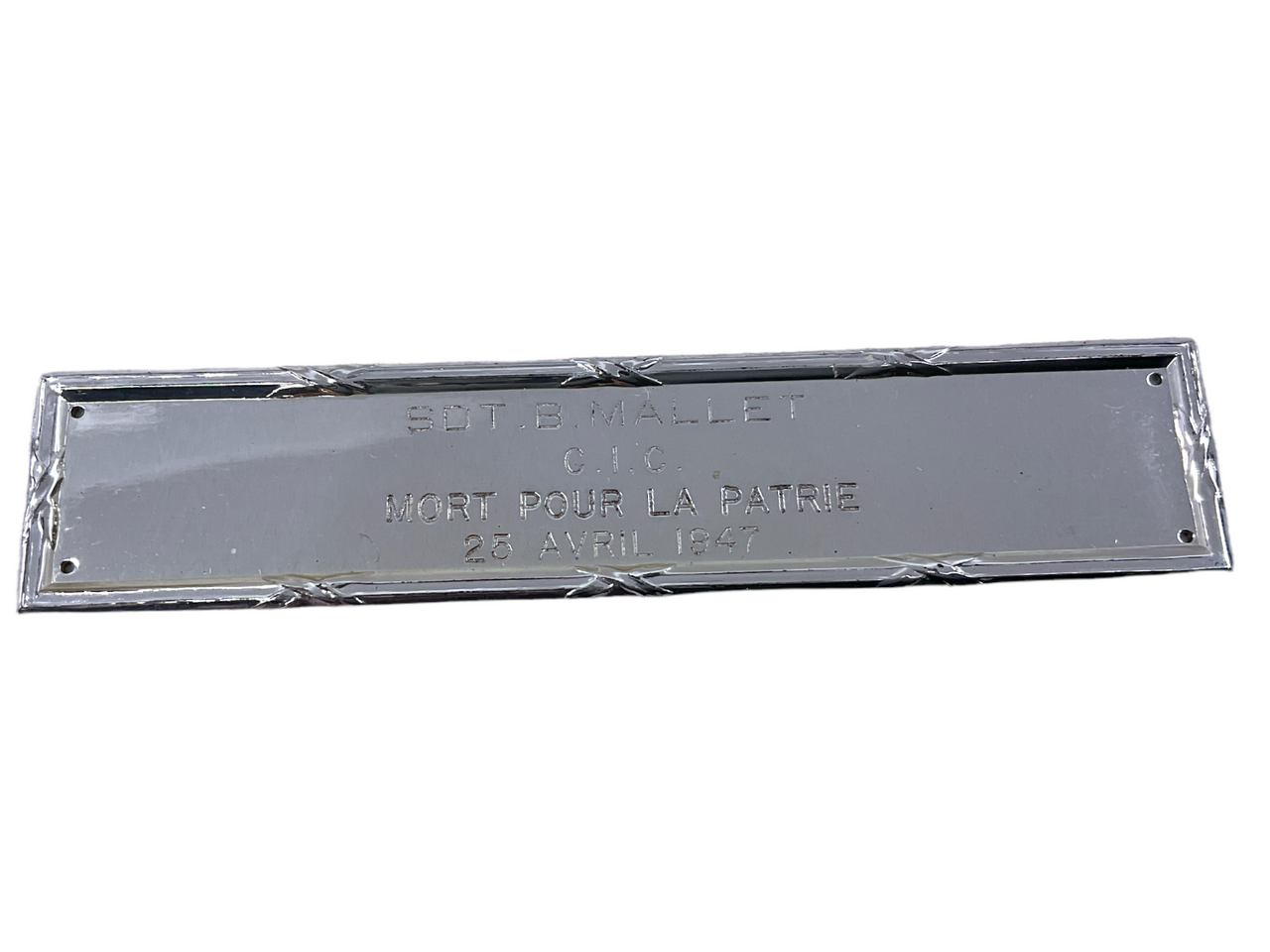 This listing commemorates Private Mallet, a distinguished member of the Royal 22e Regiment, often referred to as the “Van Doos,” of the Canadian Army during World War II. The centerpiece of this memorial is a Birks Memorial bar, a significant tribute awarded posthumously to honor those who served with valor and dedication. Private Mallet passed away in 1947, and this memorial item serves as a lasting testament to his bravery and sacrifice. The Royal 22e Regiment is renowned for its illustrious history and the critical role it played in various campaigns during the war. This poignant piece offers a tangible connection to a brave soldier’s legacy, encapsulating the admiration and respect he garnered during his service. Ideal for collectors and historians, this memorial bar provides a heartfelt glimpse into the past and honors the memory of a Canadian hero.