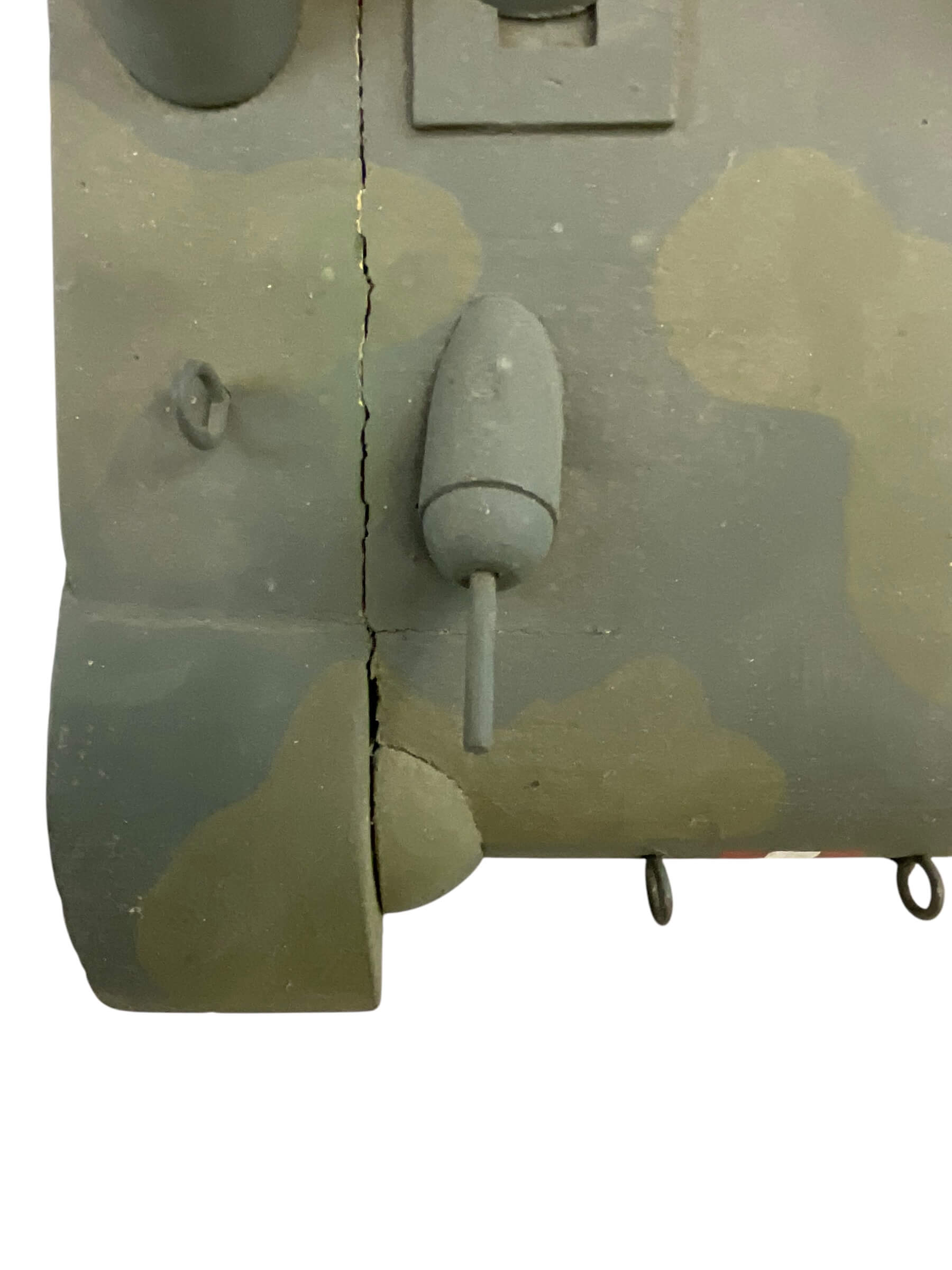This decorative piece, titled ‘WW2 Canadian Sherman Firefly Wood Tank ID Model’ is an exquisite representation of one of the most iconic tanks from the Second World War. Made with great attention to detail, it measures 20 X 9 X 10 inches, making it a substantial and striking addition to any collection or display. The model is handcrafted from solid wood, showcasing the design and engineering features of the original Sherman Firefly tank. The Canadian connection is showcased in the markings and insignia applied to the model. Its wooden construction adds a unique, vintage appeal that sets it apart from typical plastic models. This piece is not only a tribute to the Sherman Firefly and its role in the war, but also a celebration of Canadian heritage and craftsmanship. Perfect for historians, military enthusiasts, or model collectors, it’s a tangible connection to a pivotal moment in history.