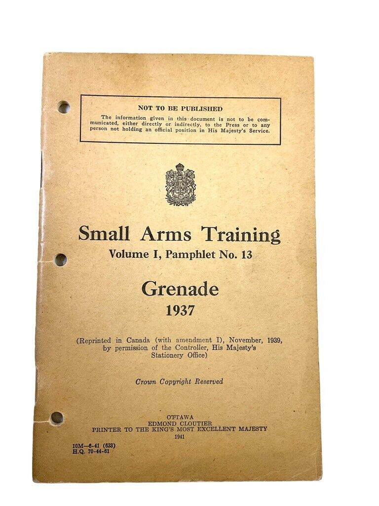WW2 Canadian Small Arms Grenade Vol 1 Pam 13 1937 Soft Cover Reference Book