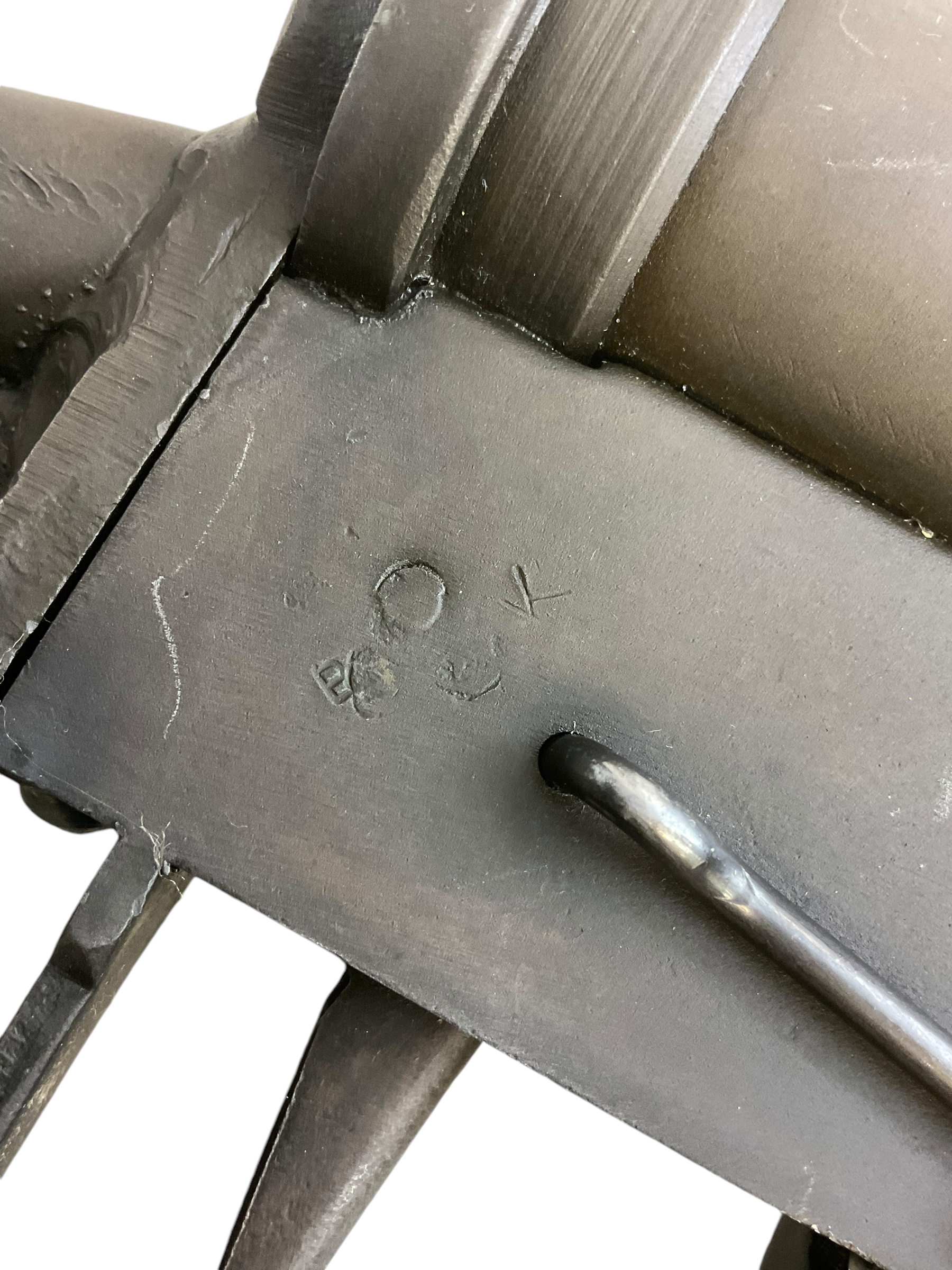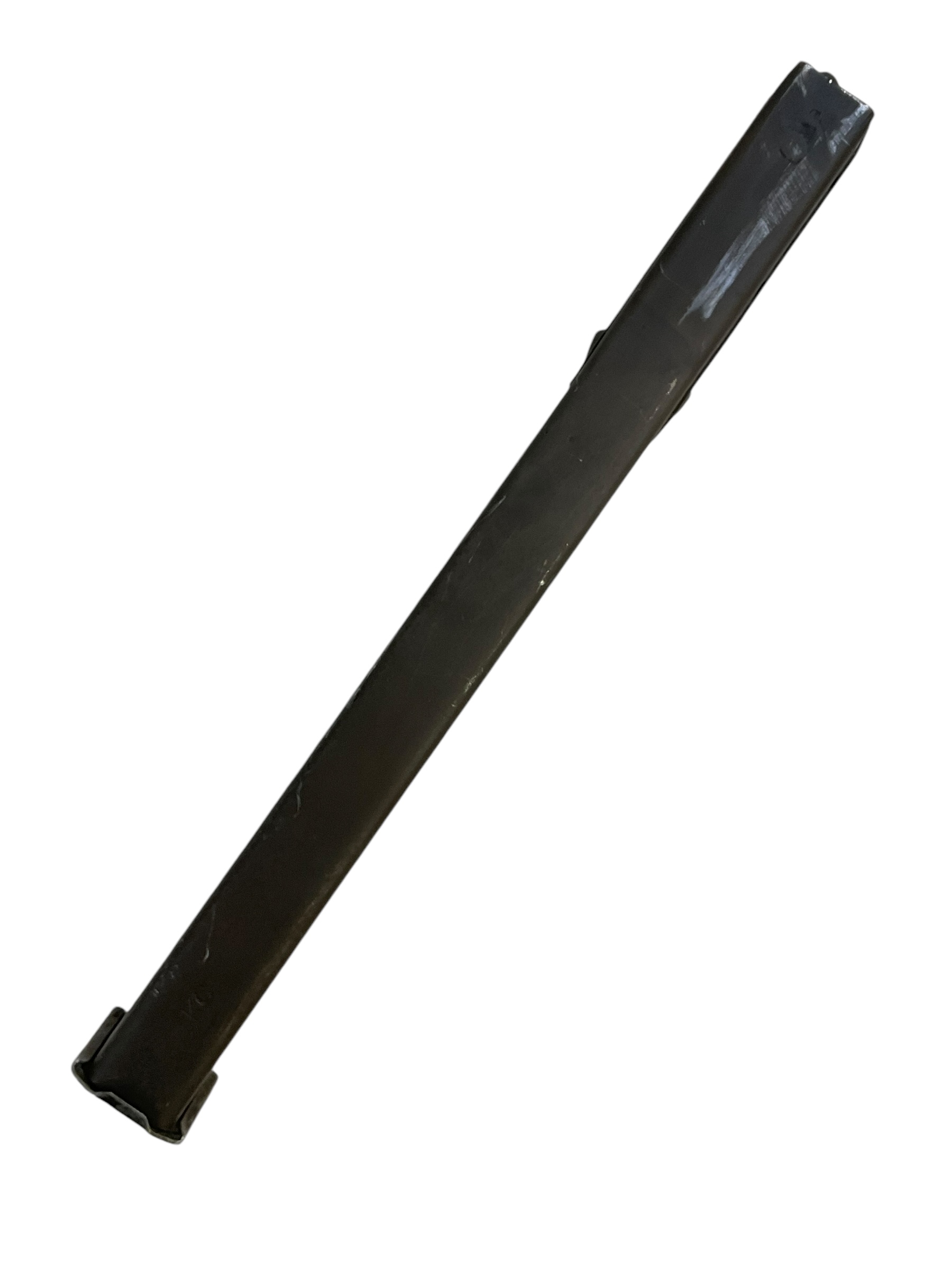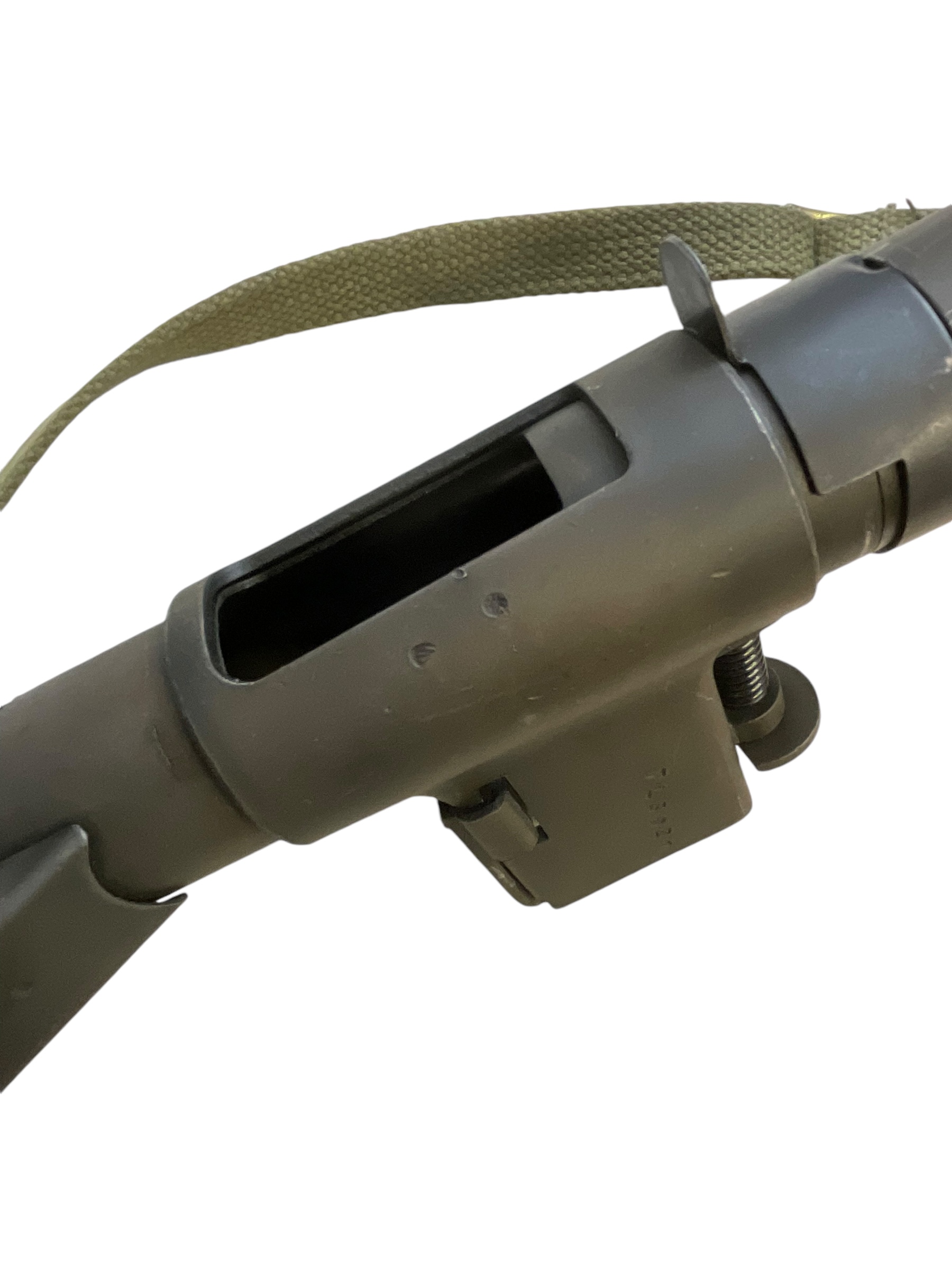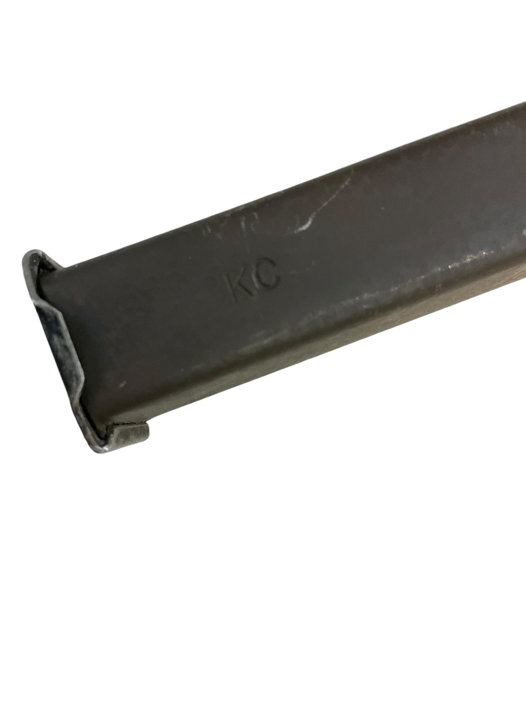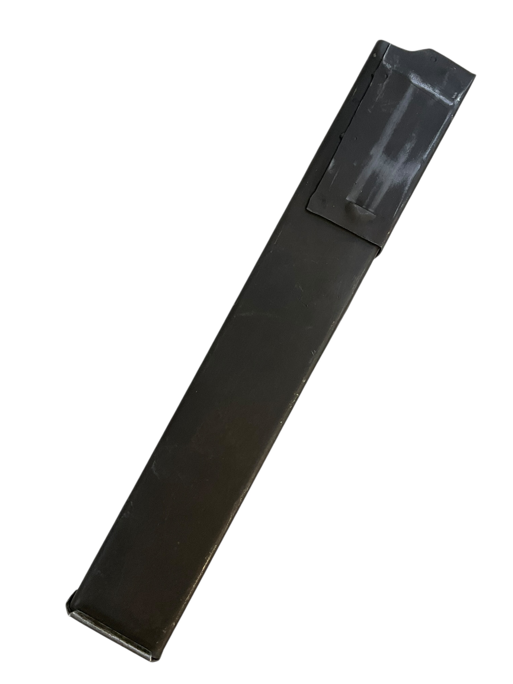 The WW2 Canadian Sten Gun Long Branch 1943 Dated DEWAT is a notable piece of military and Canadian history. Manufactured during the height of the Second World War in 1943 by the Long Branch Arsenal in Long Branch, Ontario, this Sten Gun was a pivotal weapon used by Canadian troops. The Sten Gun is a British 9mm submachine gun known for its simple design and effective combat performance. DEWAT, an acronym for ‘Deactivated War Trophy,’ signifies that this gun has been rendered incapable of firing for safe collection and display purposes. This piece retains its original markings and shows the patina of time, making it an attractive addition to any military memorabilia collection.
