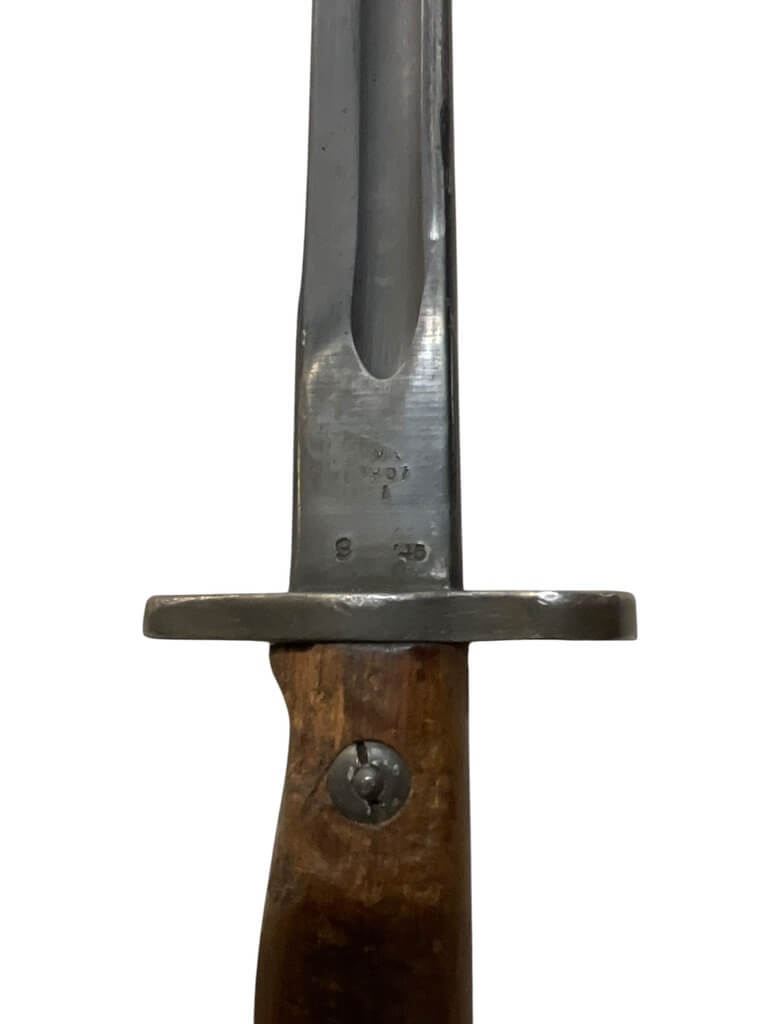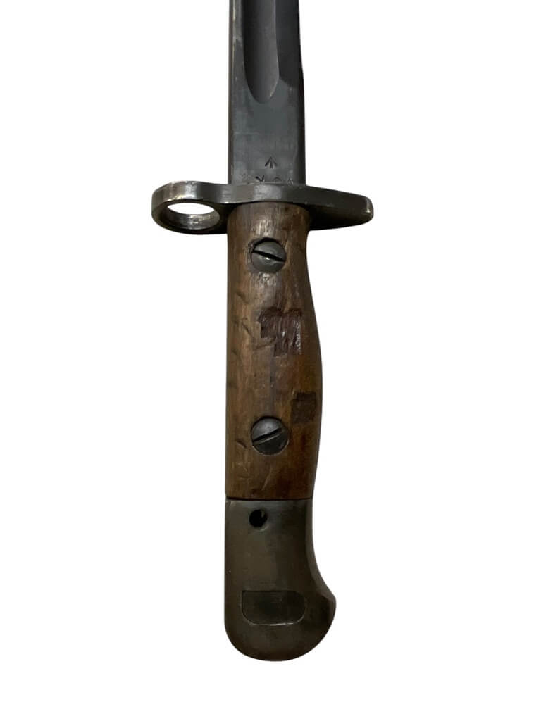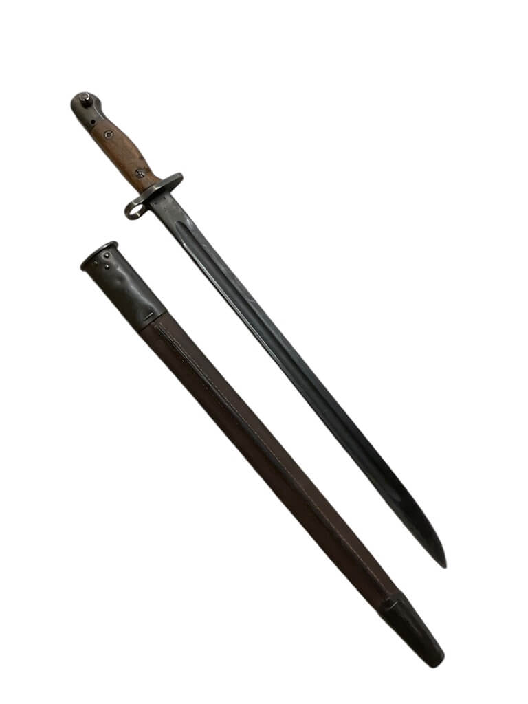 This product is a WW2 Canadian Sword Bayonet C Broad Arrowed, a historic piece of military memorabilia. It represents the strength and resilience of the Canadian forces during the Second World War. The bayonet is marked with a distinctive ‘C Broad Arrow’, the official mark of the Canadian government, symbolizing its authenticity. It is characterized by a sturdy blade that speaks volumes about the craftsmanship of the era. The grip is robust and comfortable, allowing the user to hold it securely. The sword bayonet comes with a scabbard, which further enhances its appeal. This piece of history is perfect for collectors and military enthusiasts, as it provides a tangible connection to Canada’s past. It serves as a reminder of the sacrifices made by brave soldiers in the face of adversity. Please note that this artifact is intended for collection purposes, and not for actual use.