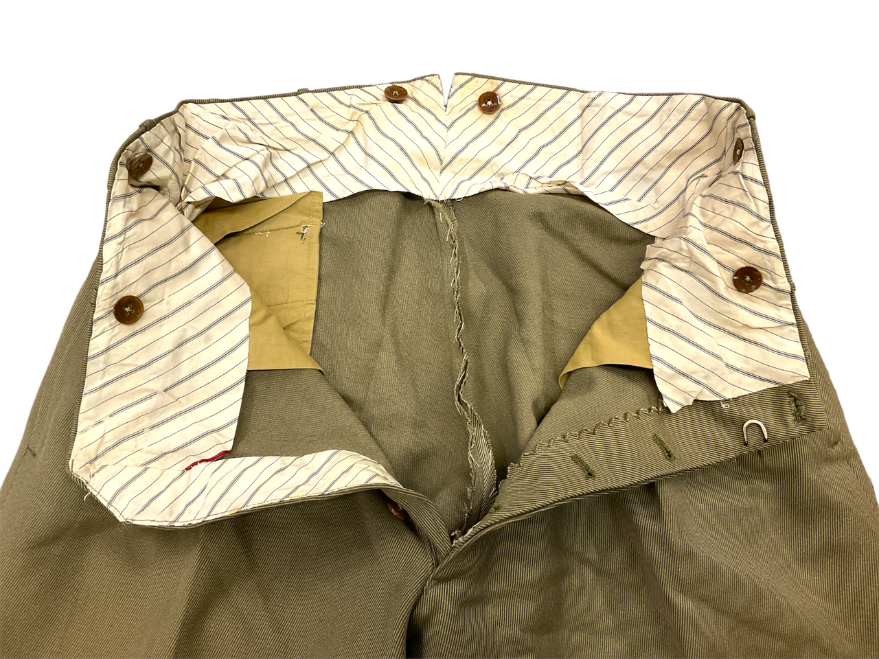Step into a piece of history with these authentic WW2 Canadian Tan Cotton Straight Leg Trousers. Designed with a timeless military aesthetic, these trousers boast a waist size of 32 inches and a length of 31 inches, making them a versatile addition to any wardrobe. Crafted from durable, high-quality cotton, they offer both comfort and functionality, ensuring they can withstand the test of time. The straight-leg design harkens back to a classic era, blending effortlessly with modern style while paying homage to their storied past. Whether you’re a history enthusiast, a collector of military memorabilia, or simply looking for a unique fashion statement, these trousers are sure to impress. Perfect for reenactments, historical displays, or everyday wear, they bring a piece of World War II heritage directly to you. Don’t miss the opportunity to own this remarkable piece of Canadian military history.
