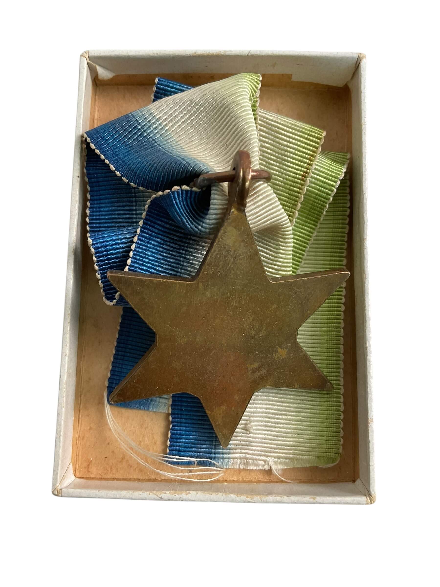 The WW2 Canadian The Atlantic Star Full Size Medal in Box is an authentic military campaign decoration awarded to members of the British and Commonwealth forces. Instituted in May 1945, the Atlantic Star was designated for operational service at sea in the Atlantic and home waters during the Second World War, specifically between 3 September 1939 and 8 May 1945. The medal is a six-point