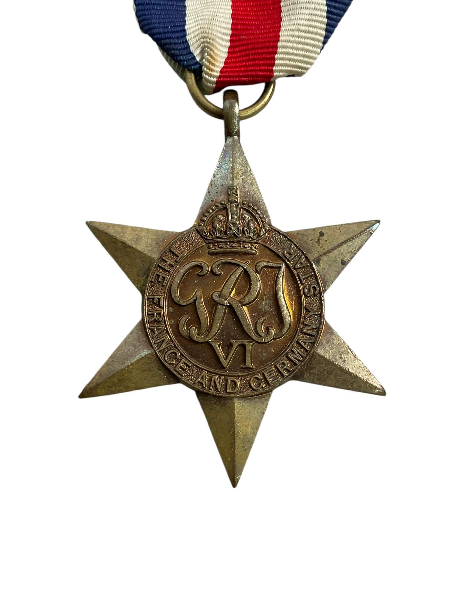 The WW2 Canadian The France and Germany Star Full Size Medal is a military award of Canadian origin that was given to personnel following their services in specific campaigns during the Second World War. Named for the chief theaters of conflict, France and Germany, this full-size medal is a significant piece of military history. The seven-pointed bronze star badge signifies the extensive contribution and sacrifice of Canadian military personnel during the historical period. Honoring service in the crucial areas of Europe, this medal bears the Royal Cypher of King George VI at its center, adding distinct authenticity. It is linked by a ribbon, featuring colors representative of the Canadian forces. As a significant retrospective item, the WW2 Canadian The France and Germany Star Full Size Medal is an emblem of Canadian military participation and valor in World War II.