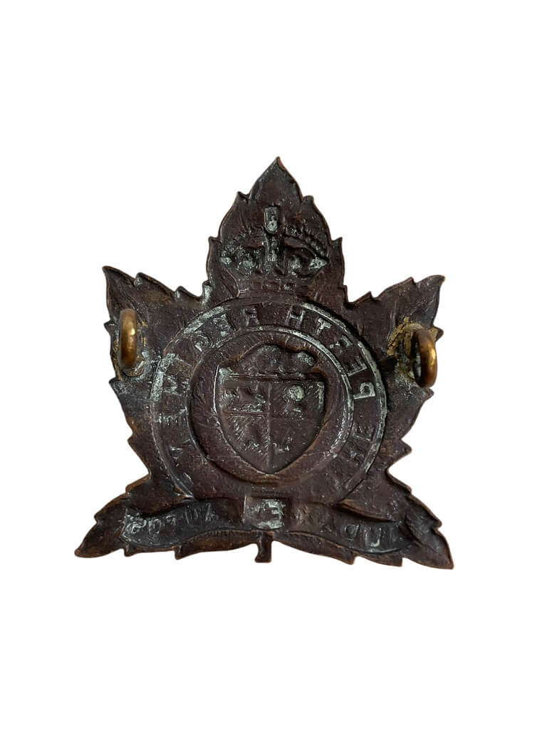 The ‘WW2 Canadian The Perth Regiment Cap Badge’ is a unique and distinctive piece of military memorabilia that offers a glimpse into Canada’s rich wartime history. This cap badge served as an emblem for the Perth Regiment, an infantry regiment of the Canadian Army during the Second World War. Crafted with precision, it displays an elegant blend of design elements symbolizing the regiment’s heritage and values. The central part features a stately lion, representing courage and strength, while the crown symbolizes loyalty to the monarchy. The badge also showcases the motto ‘Semper Paratus’ (Always Prepared), reflecting the regiment’s readiness to serve. This item is not only a collector’s treasure but also a testament to the valor of the Perth Regiment and Canadian soldiers during World War II.