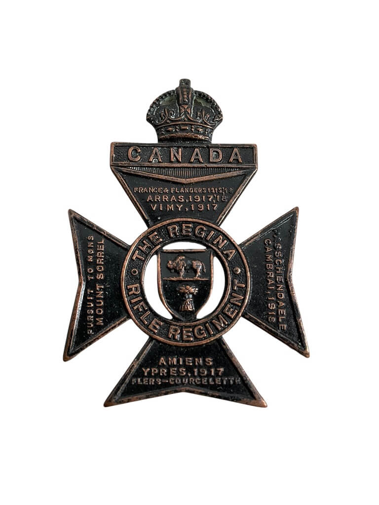 This piece refers to the ‘WW2 Canadian The Regina Rifle Regiment Cap Badge’, a notable collectible artifact from the World War II era. This badge represented the Regina Rifle Regiment, a primary reserve infantry regiment of the Canadian Army. The Regina Rifle Regiment was active during the Second World War, with significant contribution to the D-Day landings and the liberation of Northwest Europe. The cap badge is a symbol of bravery and resilience, embodying the spirit of Canadian soldiers who served with honor and dedication. It features unique designs specific to the regiment, making it a cherished item for collectors, historians, and military enthusiasts. Its historical significance, coupled with its intricate craftsmanship, makes it a captivating piece of military memorabilia. Please note that provenance and condition are crucial factors in determining the value of such collectibles.