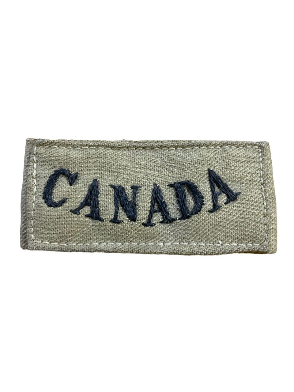 WW2 Canadian Tropical CANADA Slip On Shoulder Title The “WW2 Canadian Tropical CANADA Slip-On Shoulder Title” is a historical military insignia from World War II, specifically designed for Canadian troops serving in tropical climates. This shoulder title was part of the standard issue uniform and featured a lightweight, breathable fabric suitable for hot, humid environments. The word “CANADA” is prominently displayed, symbolizing the national pride and identity of the soldiers who wore it. These slip-on titles were easy to attach and remove, making them practical for the rigors of tropical warfare. Collectors and historians value these shoulder titles for their historical significance and the role they played in distinguishing Canadian military personnel during the global conflict. Whether you’re a military memorabilia enthusiast or a history buff, the WW2 Canadian Tropical CANADA Slip-On Shoulder Title represents a fascinating piece of World War II heritage.
