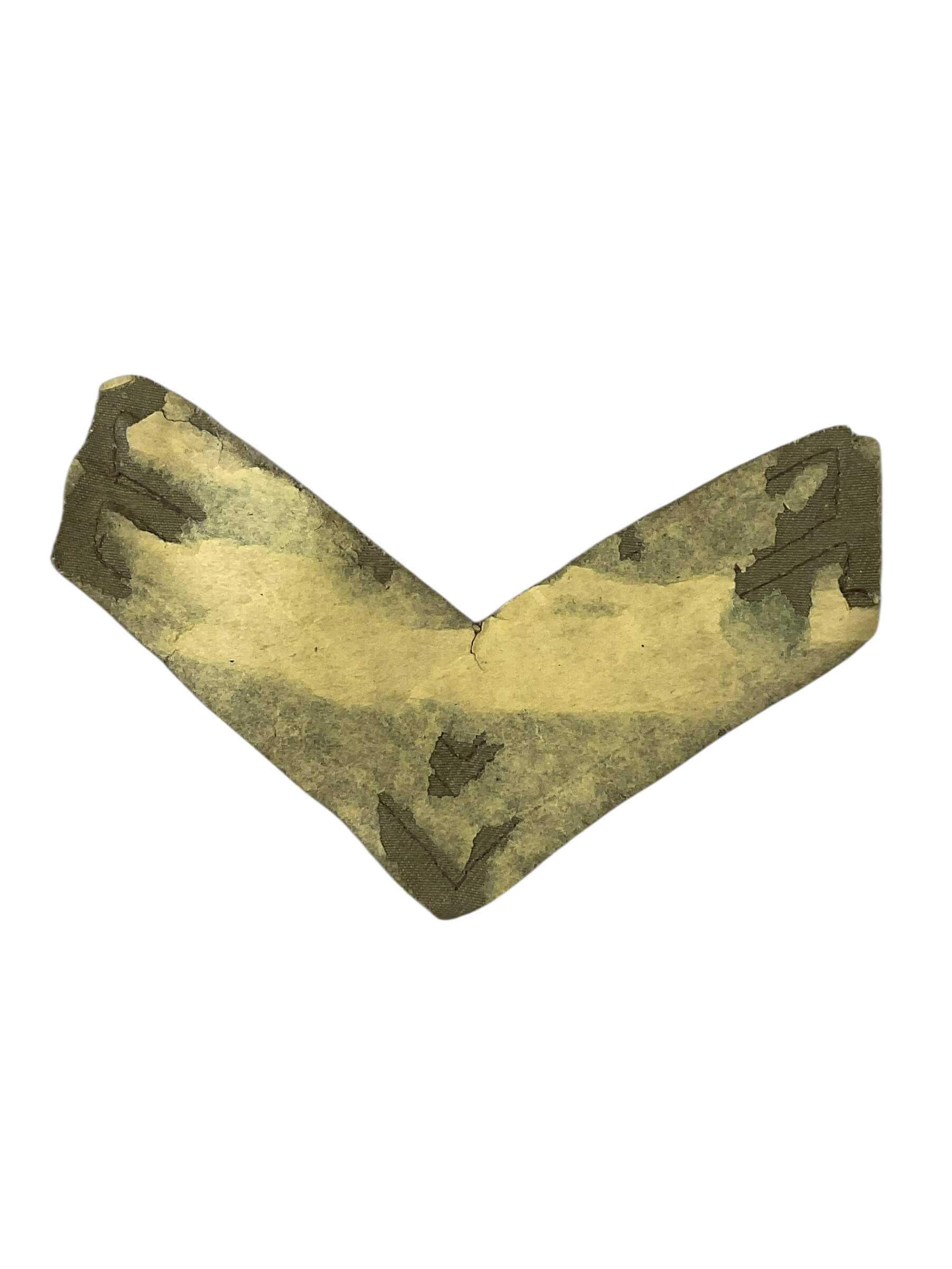 The WW2 Canadian Tropical Corporal Rank Insignia Single is an original example of the insignia used by Canadian Army personnel serving in tropical or warmer climates during the Second World War. This insignia features two chevrons, signifying the rank of Corporal, and is typically constructed from lightweight khaki or tan fabric suitable for use with tropical uniforms. The insignia was sewn onto the upper sleeve of the service dress to denote the wearer’s rank. Canadian troops deployed to the Mediterranean, Southeast Asia, and other warm regions frequently wore such tropical variations, which differed in fabric and color from standard wool insignia intended for temperate climates. This rank badge would have been a standard issue item for non-commissioned officers holding the rank of Corporal within Canadian Army units overseas. The single piece offered is intended for collectors or researchers interested in military dress, insignia, or the specific field uniforms of Canadian forces during World War II.