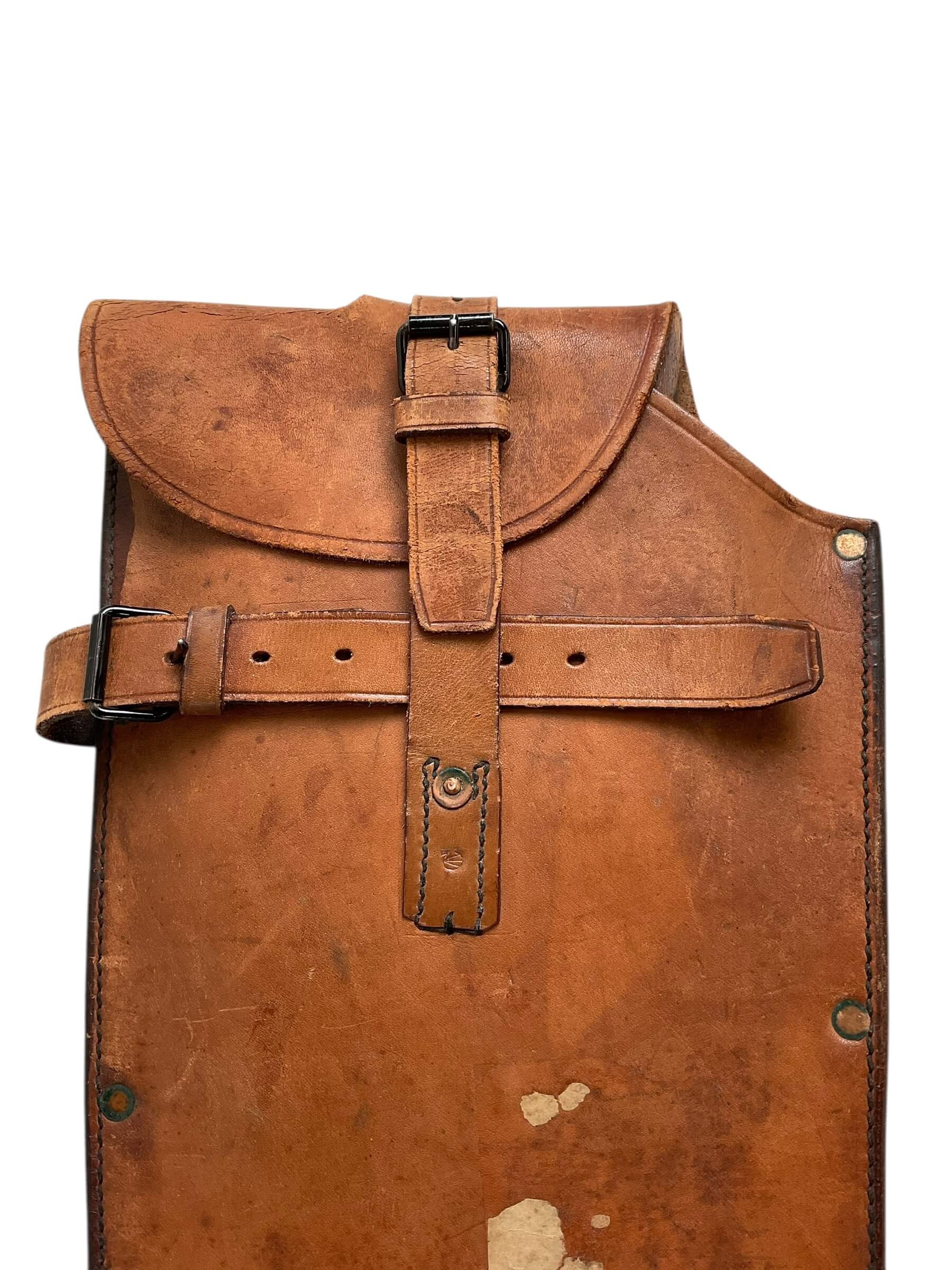 This item is a genuine WWII-era Canadian military artifact, specifically a vehicle saw encased in leather. The saw is marked with the “C Broad Arrow”, an identifier used by the Canadian government for military equipment, indicating its authentic military origin. The saw’s production date, 1937, is also stated, situating it just prior to the beginning of the war. Its primary use was likely for clearing obstacles, roadblocks, or for general maintenance needs of military vehicles. The leather case provided is original and served to protect and secure the saw during tough war conditions. This item holds significant historical value, offering a tangible connection to Canada’s WWII efforts.
