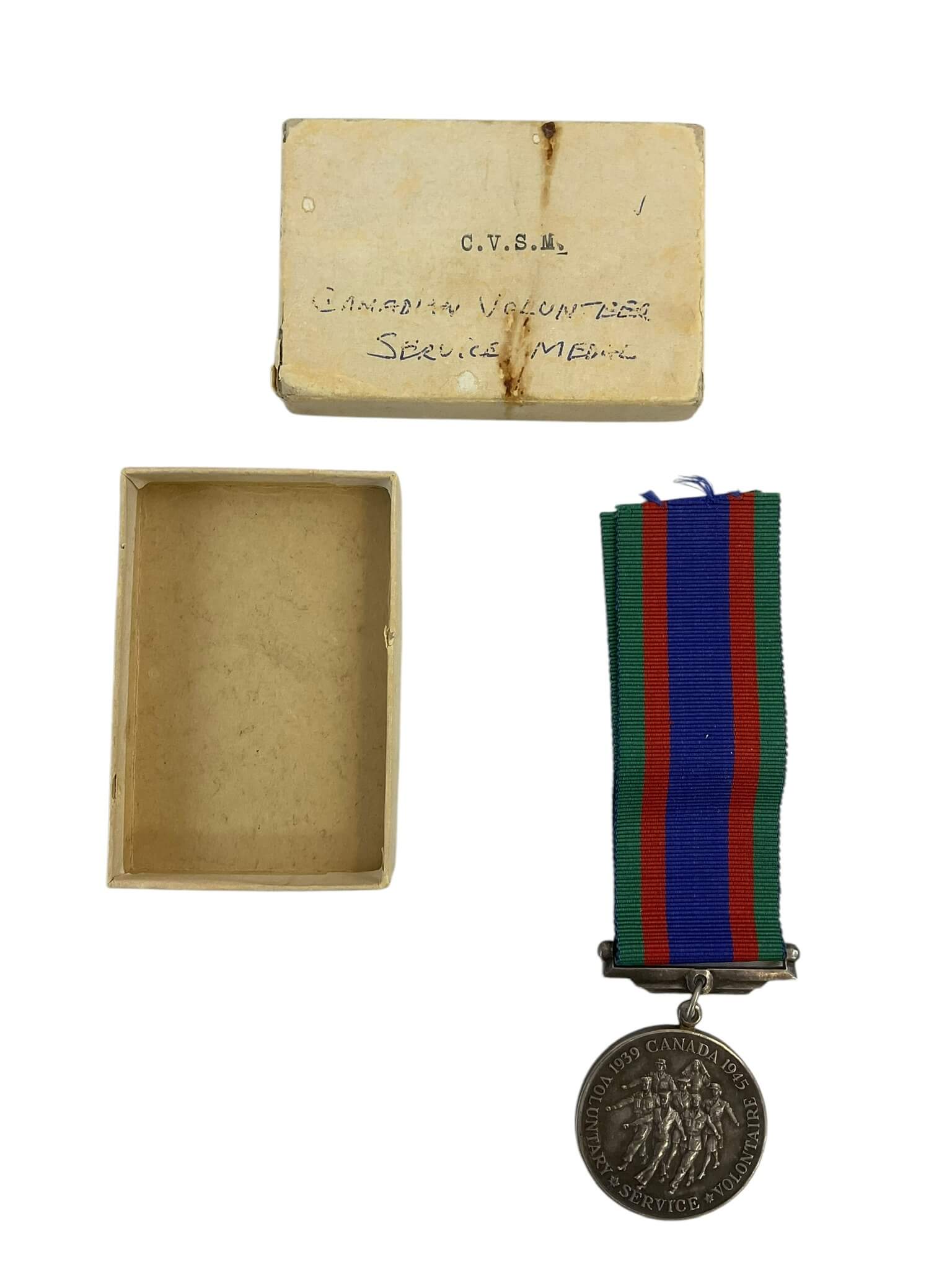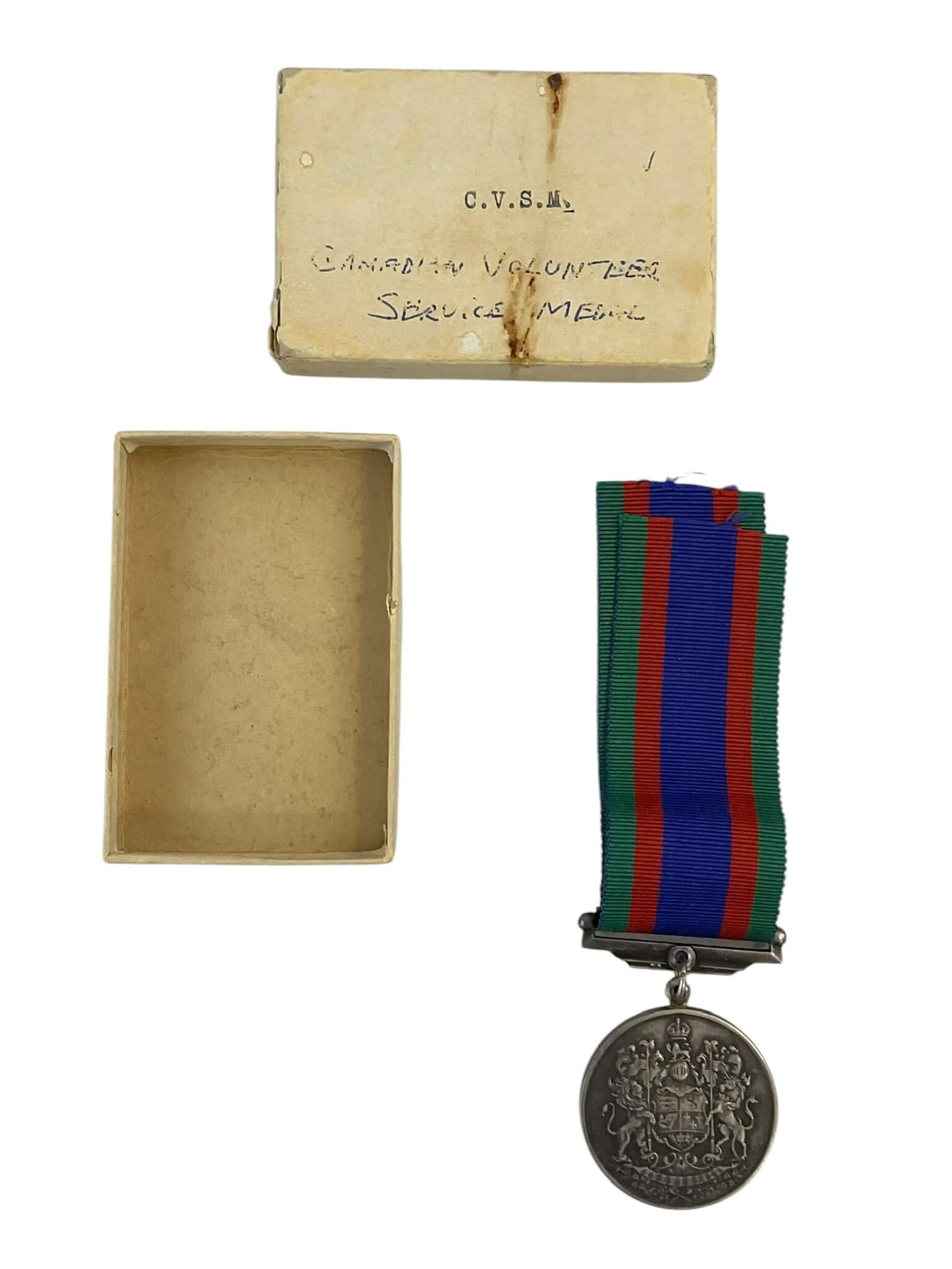 This item is a full-size World War 2 Canadian Volunteer Service Medal, presented in its original box. It is a highly collectible piece of history, symbolizing the bravery and dedication of Canadians who volunteered for service during the Second World War. The medal is made of silver and features a design representing the crown and the lion, symbolizing the British monarchy, and seven marching figures, representing the Army, Air Force, Navy and Nursing Service. The other side of the medal is inscribed with the words “1939 Canada 1945 Voluntary Service Volontaire”. It’s accompanied by an official ribbon in the national colors of red, white, and blue, and is housed in its original presentation box. This well-preserved medal is not just a piece of memorabilia, but a tribute to the sacrifices made by the Canadian forces during the war.
