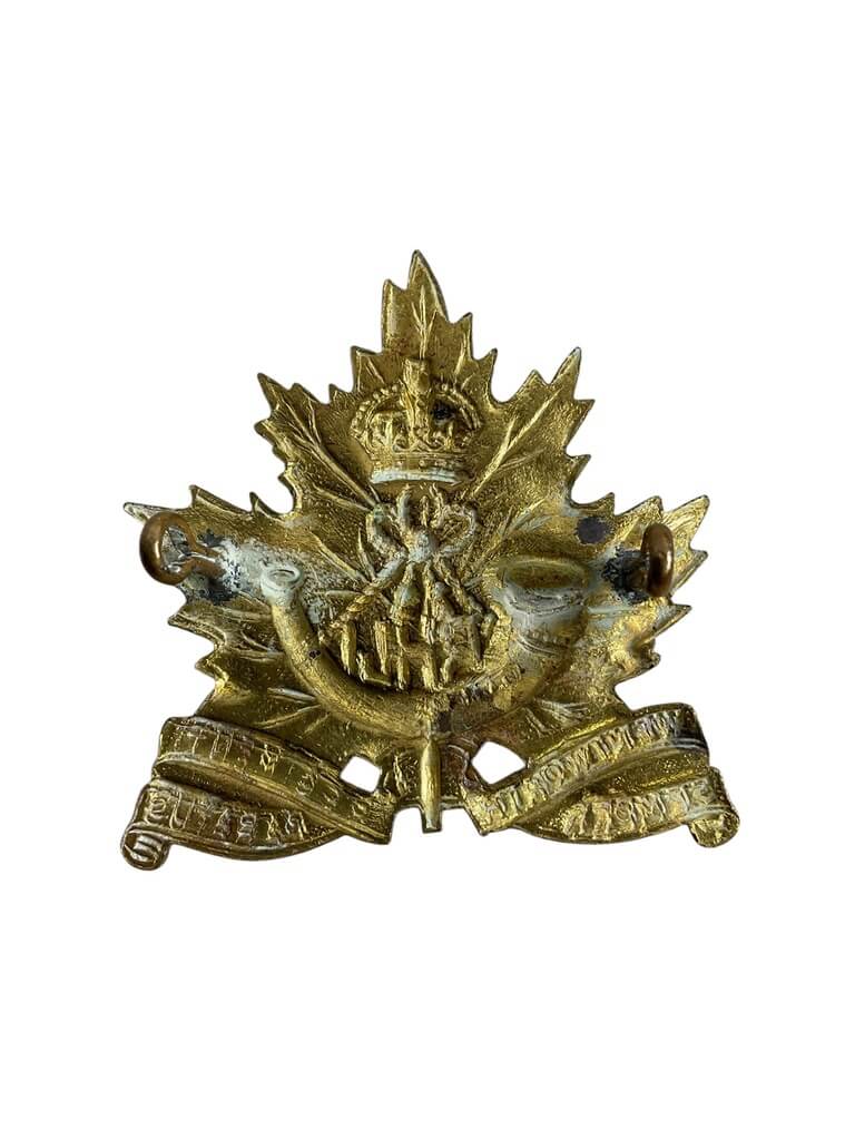 The WW2 Canadian Wentworth Regiment Cap Badge is a unique piece of military memorabilia that dates back to World War II. This distinctive badge served as a symbol of the Wentworth Regiment, an infantry regiment of the Canadian Army. The badge is typically made of quality brass or copper with intricate detailing, showcasing the regiment’s emblem. It features the traditional Canadian maple leaf and crown design, along with the regiment’s motto, “Semper Paratus” (always ready). The badge was originally worn on the peaked caps of the soldiers of the regiment, reflecting their honor, courage, and dedication during the wartime period. This item is not only a piece of Canadian history but also a testament to the bravery and commitment of the soldiers who served in the Wentworth Regiment during the Second World War.