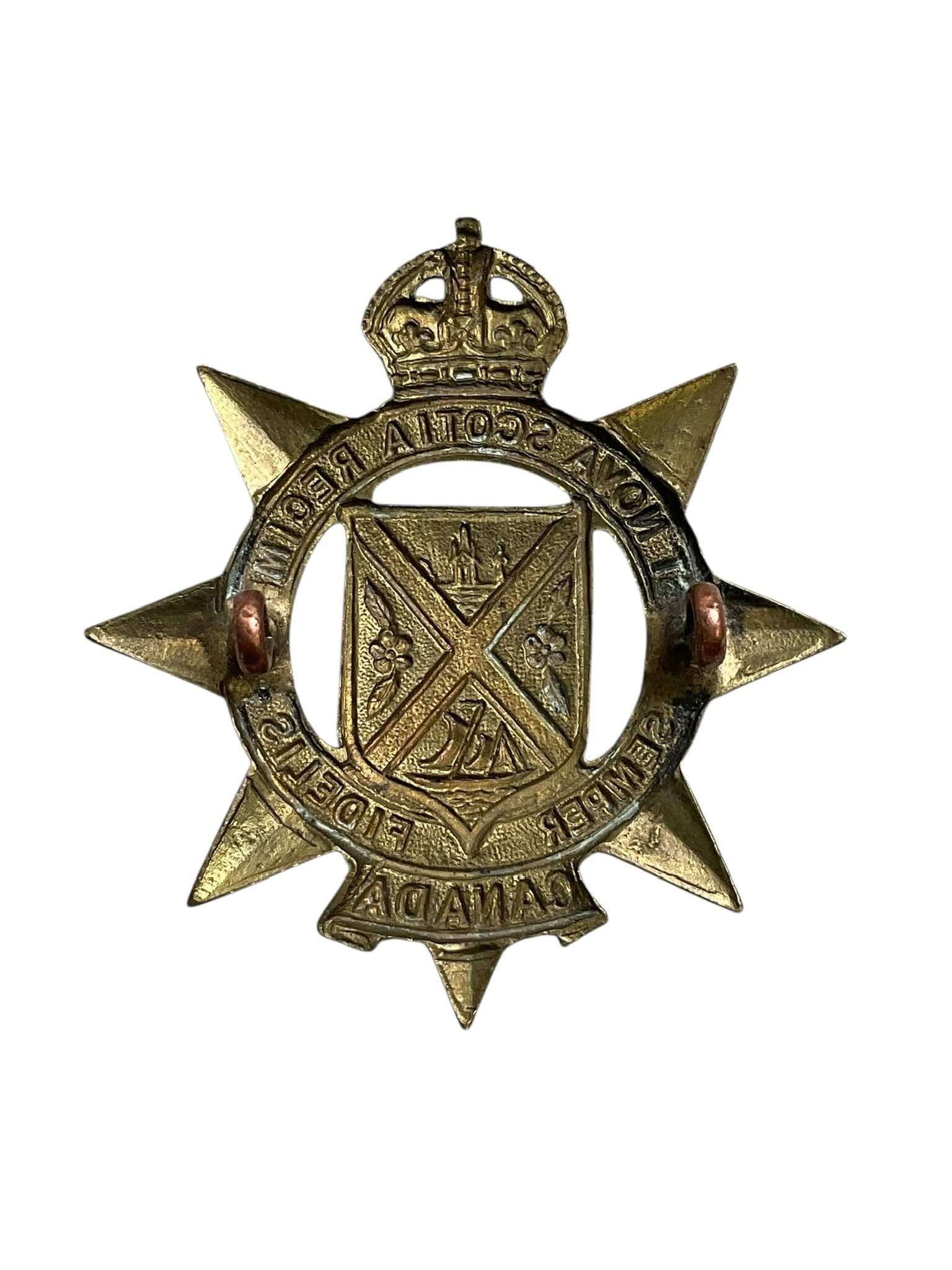 This item is a WW2 Canadian West Nova Scotia Regiment Cap Badge, a significant piece of military memorabilia. It represents the West Nova Scotia Regiment, a distinguished part of the Canadian Army that participated in the Second World War. The badge is typically made of brass and features the intricate design and craftsmanship of that era. The badge is fastened to the cap with two lugs. As a historical artifact, it provides a tangible connection to Canada’s military past and the brave individuals who served in the West Nova Scotia Regiment during WW2. Collectors of military artifacts and historians would highly value this badge for its historical significance.