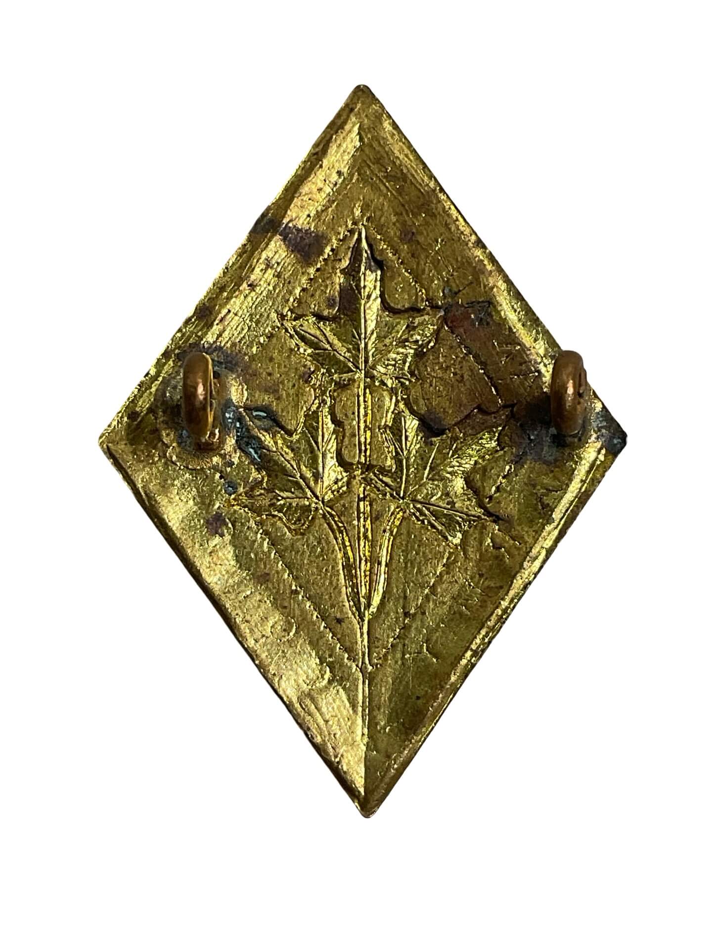 The WW2 Canadian Women’s Army Corps (CWAC) Cap Badge served as the official headdress insignia for members of the CWAC during the Second World War. Established in 1941, the CWAC was formed to enable Canadian women to contribute to the war effort in roles such as clerks, drivers, and administrative staff. The cap badge features a maple leaf design with the letters “CWAC” prominently displayed on a central scroll, typically surmounted by the Crown. Manufactured from brass or bronze, it was intended to symbolize the wearer’s service and affiliation with the Corps. The badge was worn on the beret or service cap as part of the standard uniform. The CWAC cap badge represents the historic participation of Canadian women in the military and is of interest to collectors specializing in Commonwealth or Canadian military insignia from the Second World War period.