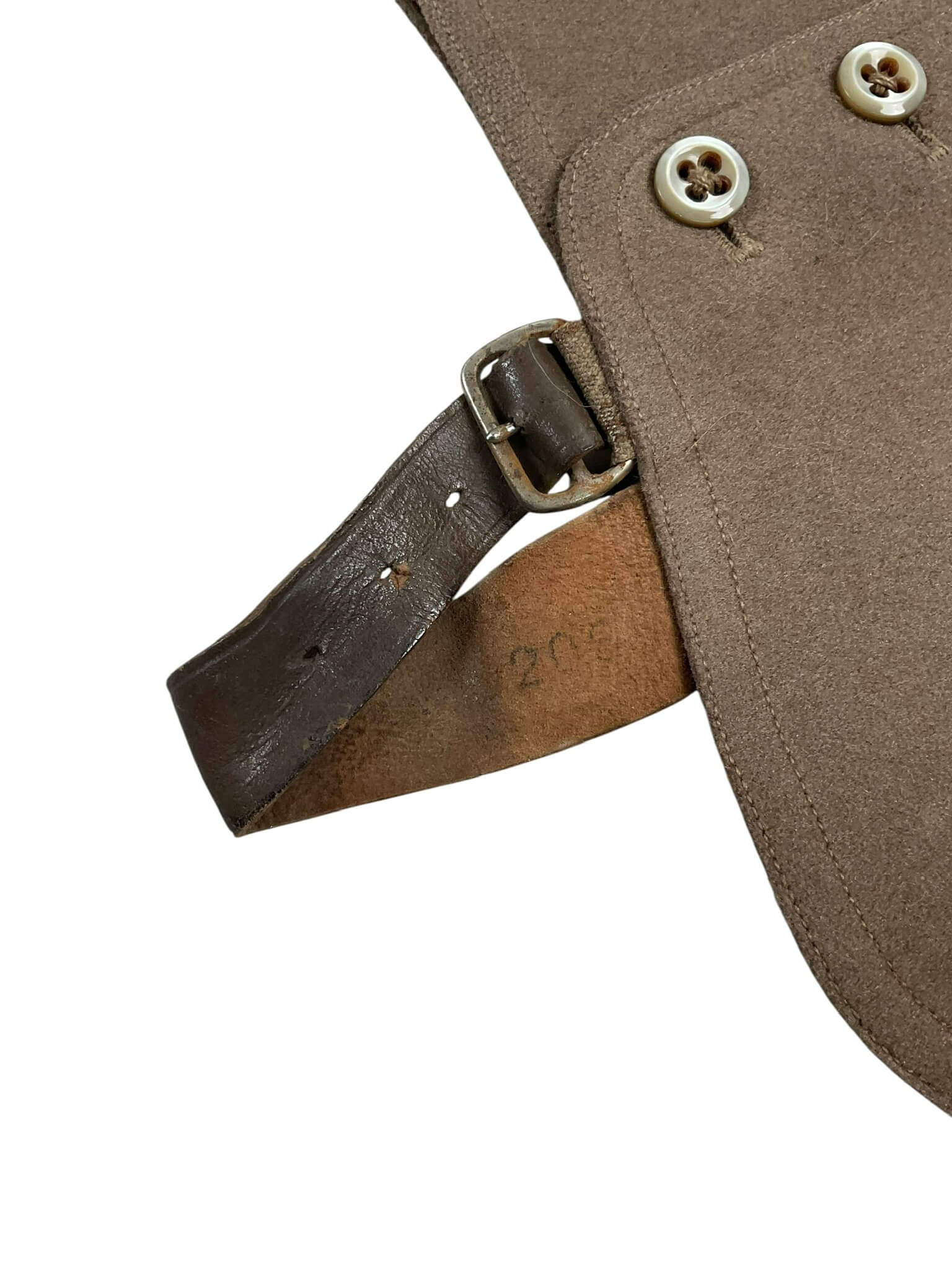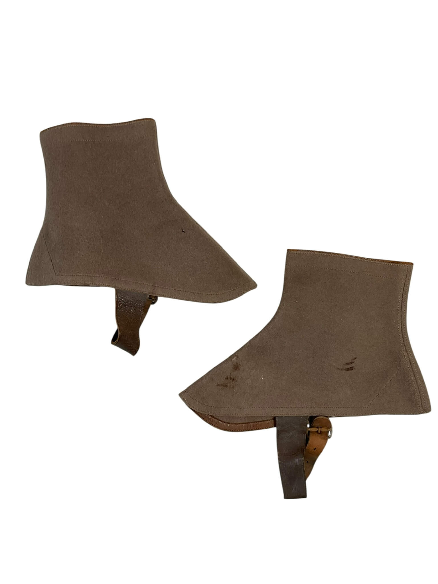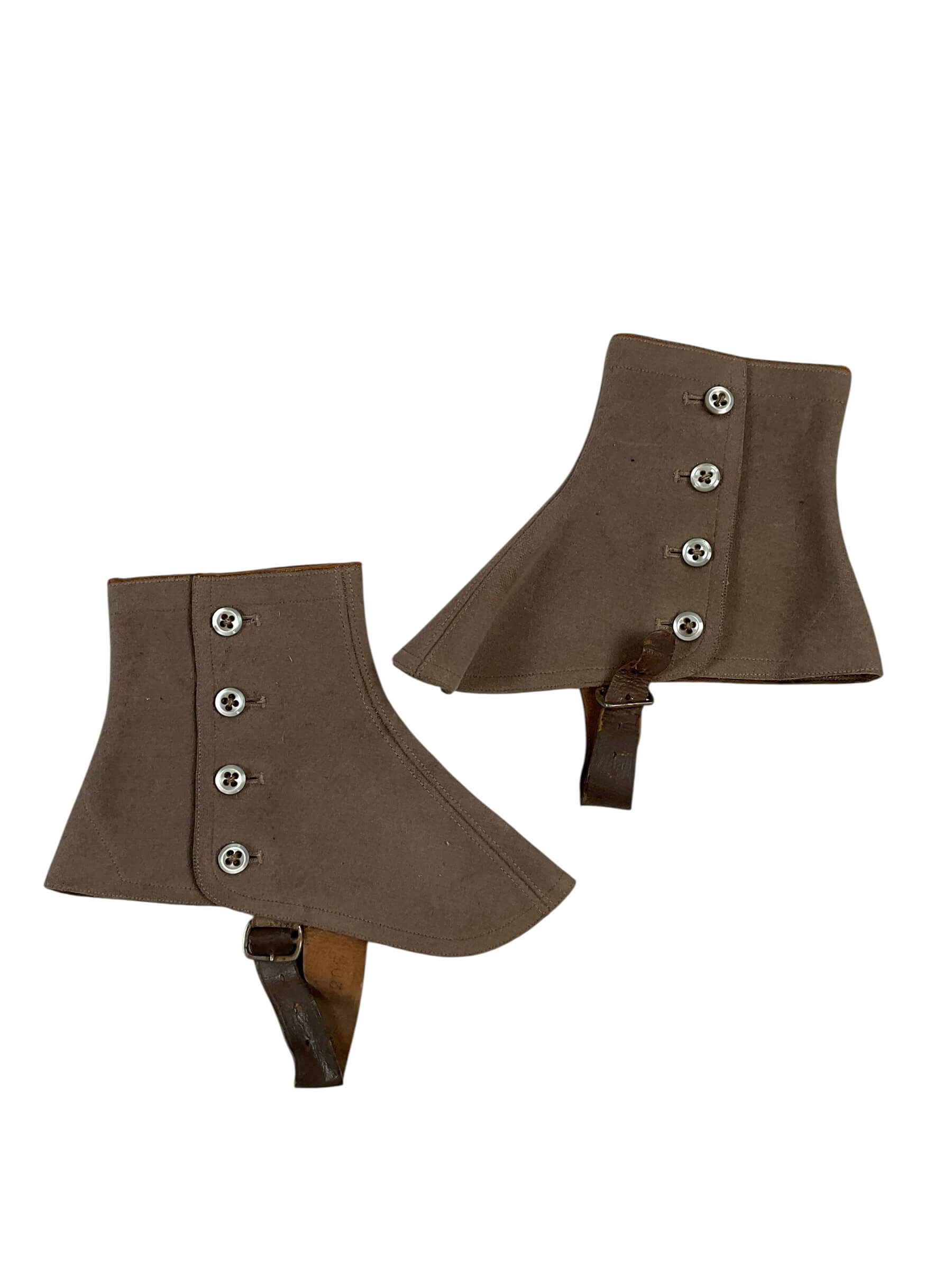 The WW2 Canadian Women’s Army Corps (CWAC) Officer’s Spatz is a uniform accessory issued to officers of the CWAC during the Second World War. Spatz, or spats, are short gaiters traditionally worn over the instep and often extending just above the ankle. This particular pair is designed for female service members and constructed from durable fabric, typically wool or canvas, with button or strap fastenings to secure them in place. Their primary purpose was to protect the tops of boots and shoes from mud and debris, while also providing a neat, standardized appearance as part of the officer’s parade or service dress. The CWAC was established in 1941, allowing Canadian women to serve in non-combat military roles, and their distinctive uniforms included items such as these spatz. Such pieces are emblematic of the contributions made by women in the Canadian military during WWII and reflect the specific uniform standards of the time.