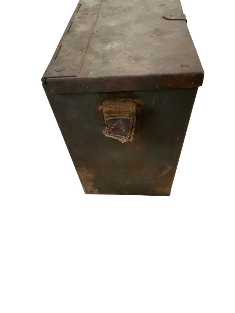 The WW2 Finnish Lahti Anti-Tank Magazines In Transit Case is a highly significant historical artifact. It consists of an original Finnish military transit case that was specifically engineered to secure and transport anti-tank magazines related to the Lahti L-39, a Finnish 20 mm anti-tank rifle used during World War II. The case is constructed from robust, weather-resistant materials and exhibits the craftsmanship and attention to detail that characterized Finnish military manufacturing. It showcases a distinctive design, with secure closures and compartments specifically designed for the storage of ammunition magazines. These cases helped to keep the magazines safe, clean, and ready for use in the harsh conditions of war. This product offers distinctive insights into the Finnish contributions to World War II and represents a unique collectible item for military historians or aficionados. Please note that this item includes only the transit case; no actual magazines or munitions are included.