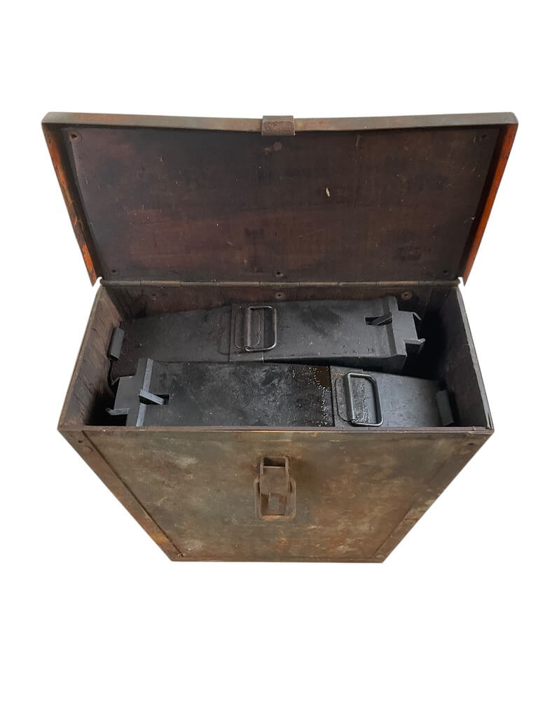 The WW2 Finnish Lahti Anti-Tank Magazines In Transit Case is a collection of historical military equipment from World War II. The set includes genuine Finnish Lahti Anti-Tank magazines stored in an original, protective transit case. Highly valued among war historians or collectors, these exhibits embody both historical significance and excellent craftsmanship.