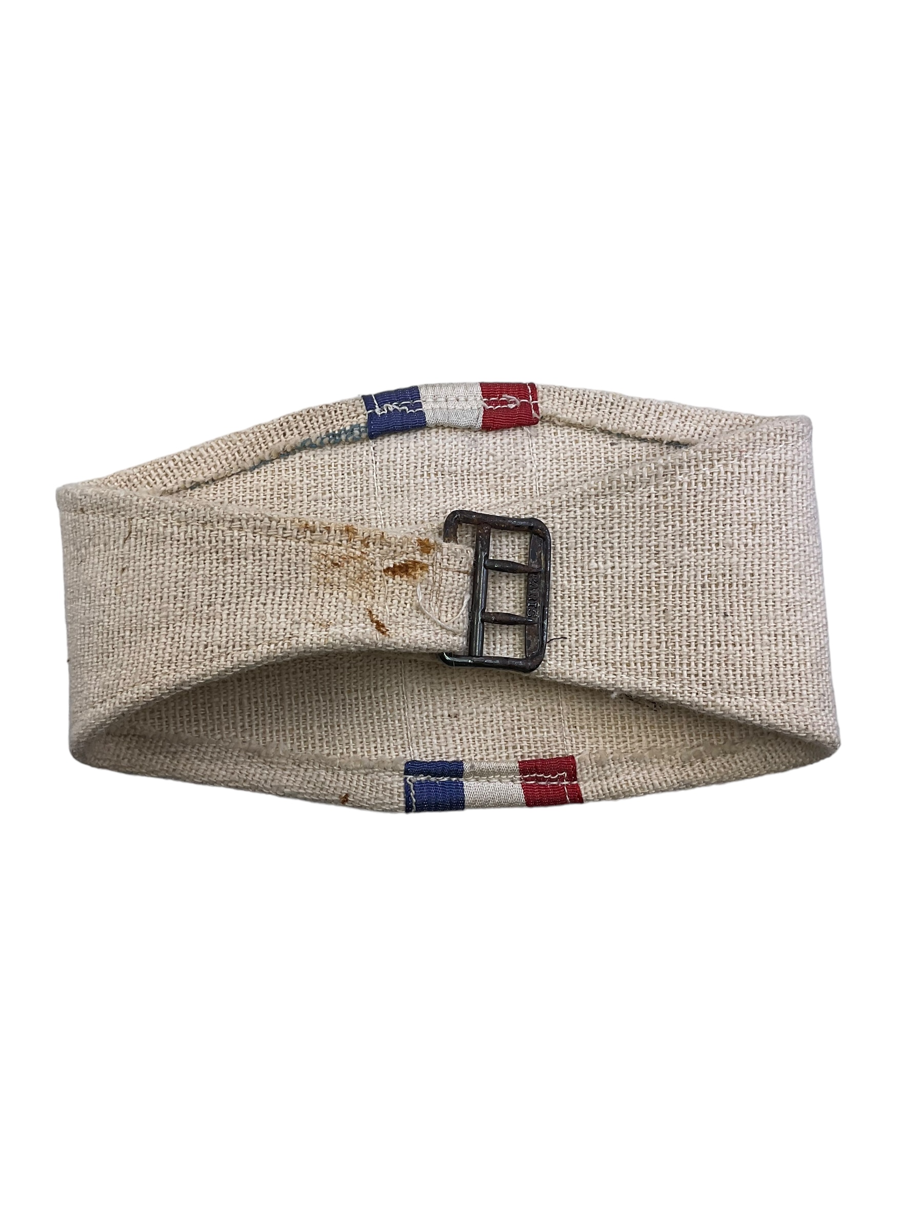 The “WW2 Free French Armband Brassard” is a historically significant artifact from the period of World War II, representing the resistance and resilience of the Free French Forces. This armband, often worn on the uniform sleeve, symbolized allegiance to the Free French movement led by General Charles de Gaulle. It typically features the Cross of Lorraine, a prominent emblem of French patriotism, and vibrant colors reflecting the national flag of France—blue, white, and red. The brassard served not only as an identifier of the Free French soldiers but also as a beacon of hope and defiance against Axis occupation. Collectors and historians highly value these items for their authentic connection to the wartime era and as a tribute to the bravery and dedication of those who fought for France’s liberation. The WW2 Free French Armband Brassard remains a poignant reminder of the struggle for freedom and national sovereignty.