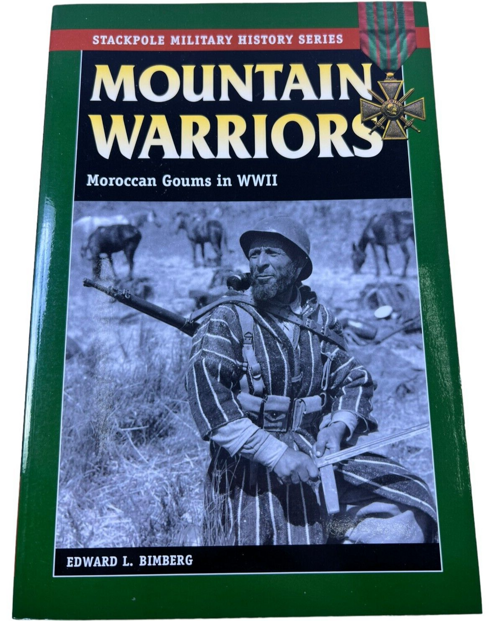 This is a used softcover WW2 French Mountain Warriors Moroccan Goums in WW2 Edward L Bimberg Stackpole Reference Book. Total of 194 pages with lots of pictures and information.