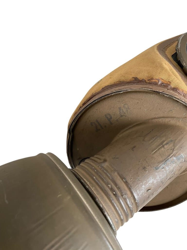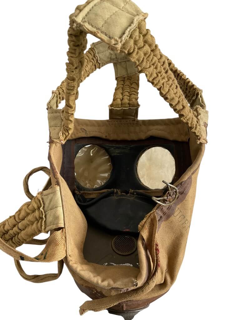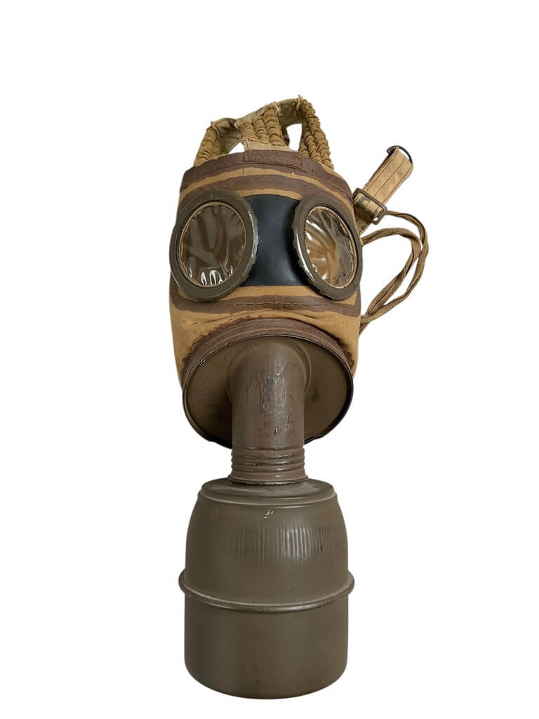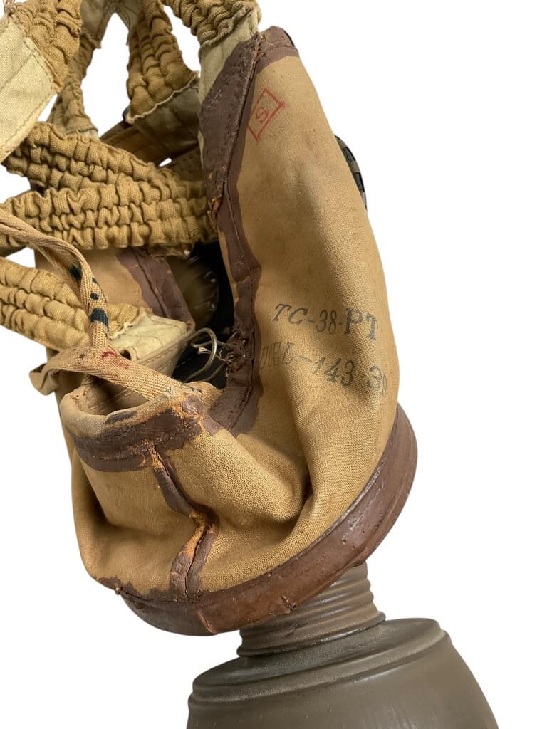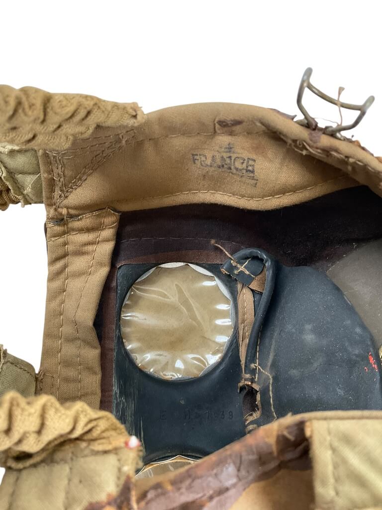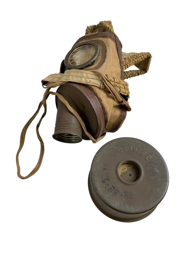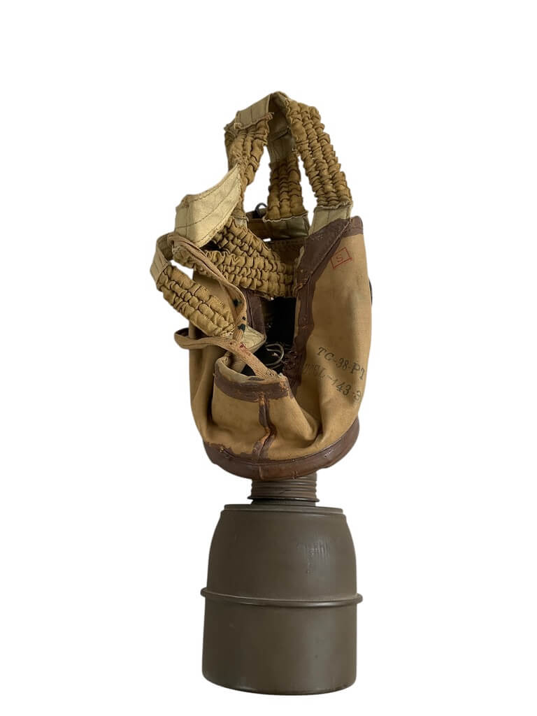 This WWII French TC38 Civil Gas Mask is a remarkable piece of history, offering a glimpse into the realities of life during one of the world’s most tumultuous periods. Developed and used in the late 1930s and throughout the 1940s, this gas mask was designed to protect French civilians from potential gas attacks during the Second World War. The mask comes complete with its original case, adding further historical value to the item. The case provides evidence of careful storage and preservation, contributing to the mask’s overall excellent condition. The utilitarian design and practicality of the TC38 mask highlight the urgency of the era, making it a powerful artifact for collectors and history enthusiasts alike. This authentic piece offers a tangible connection to the past, illuminating the everyday experiences of those living through the war. Its historical significance and well-preserved state make it an invaluable acquisition.