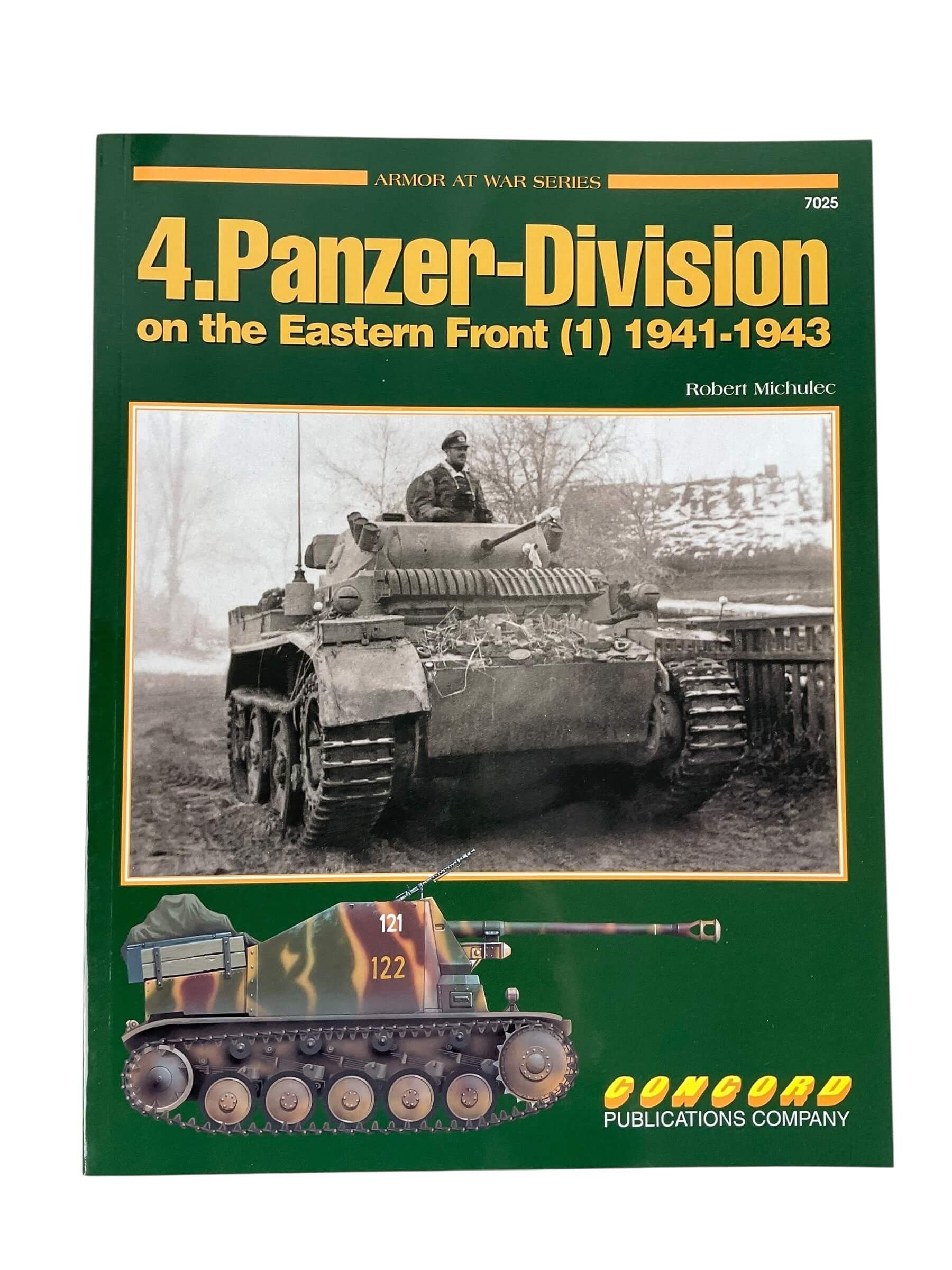 The WW2 German 4 Panzer Division on the Eastern Front (1) Concord Issue 7025 is a used softcover reference book. This historical resource covers the operations and experiences of the 4th Panzer Division during World War II on the Eastern Front. It is an informative addition for historians and enthusiasts interested in military history.
