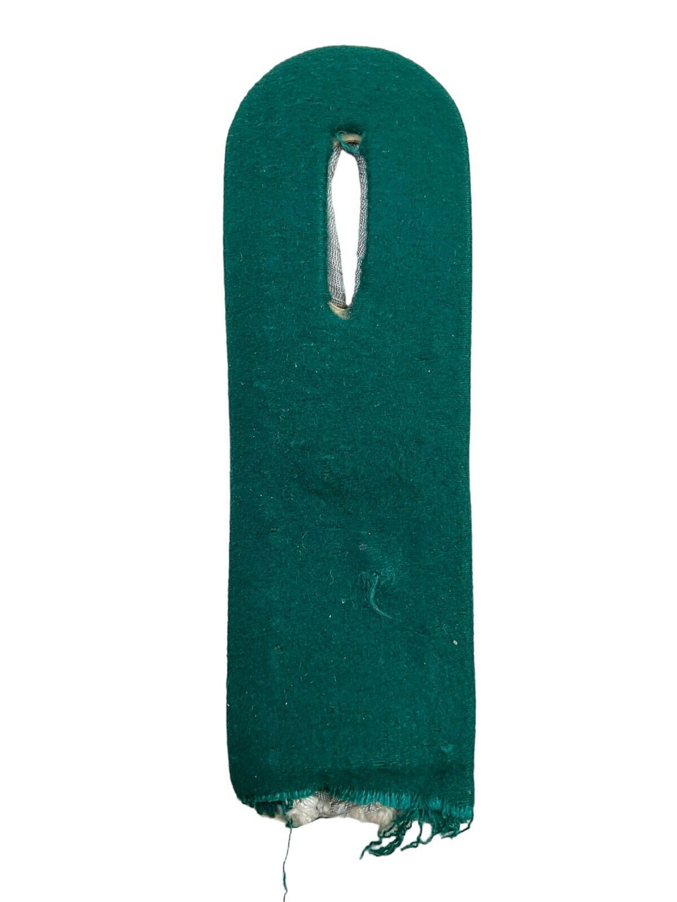This authentic WW2 German Administration Admin Officer Shoulder Board is a remarkable artifact from a significant period in history. The single shoulder board, meticulously designed and crafted, was worn by administrative officers in the German military during the Second World War. It showcases the distinctive braided pattern and color scheme that were emblematic of the administrative branch, often featuring green and silver tones. The shoulder board not only represents the structured hierarchy and meticulous organization of the German military but also serves as a tangible connection to the past, reflecting the duties and responsibilities shouldered by officers in maintaining logistics, communications, and overall wartime administration. For historians, collectors, and enthusiasts, this shoulder board is a poignant piece of military regalia that offers insights into the complexities of military administration during one of the most pivotal conflicts in human history.