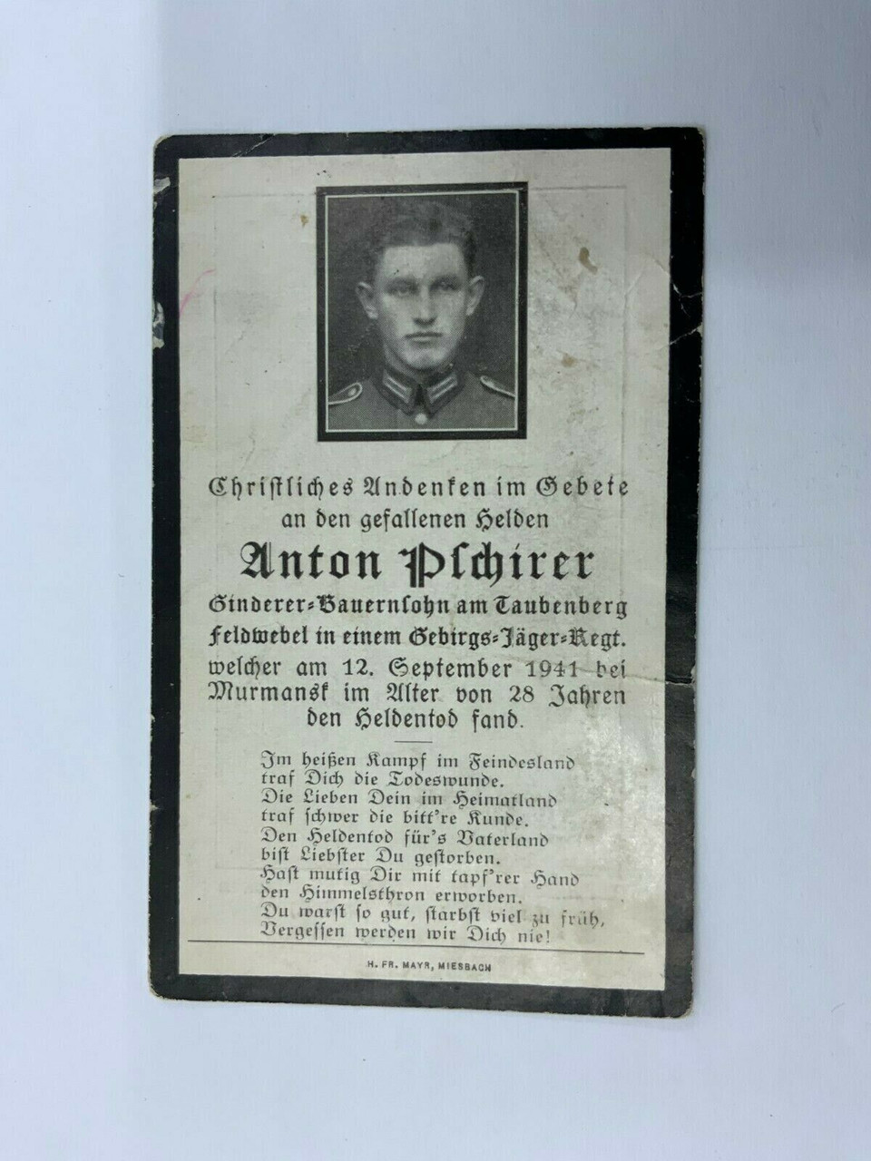WW2 German Anton Pschierer Gebirgsjager Regiment Death Card