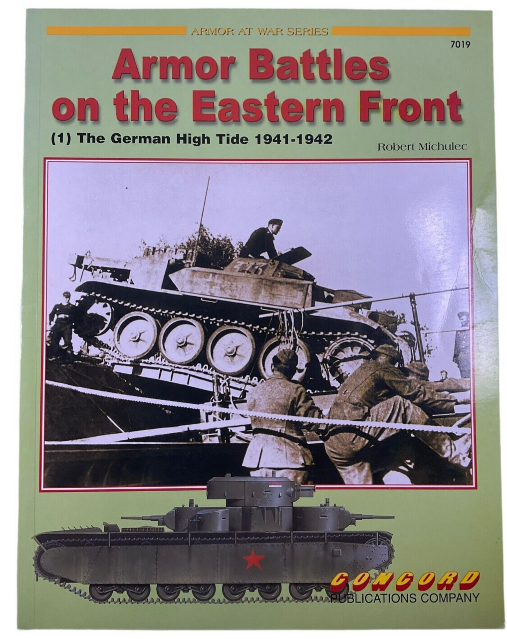 This is a used softcover WW2 German Armour Battles on the Eastern Front Vol 1 The German High Tide 1941 to 1942 Robert Michulec Concord Reference Book. Total of 72 pages with lots of pictures and information.