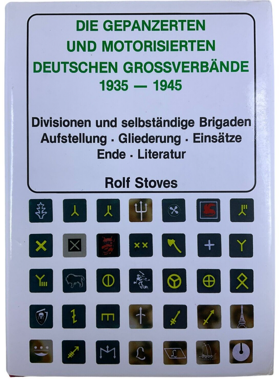 This is a used hardcover WW2 German Armoured and Motorized Large Units Divisions and Independent Brigades and Operations Rolf Stoves GERMAN TEXT Reference Book. Total of 336 pages with lots of information.