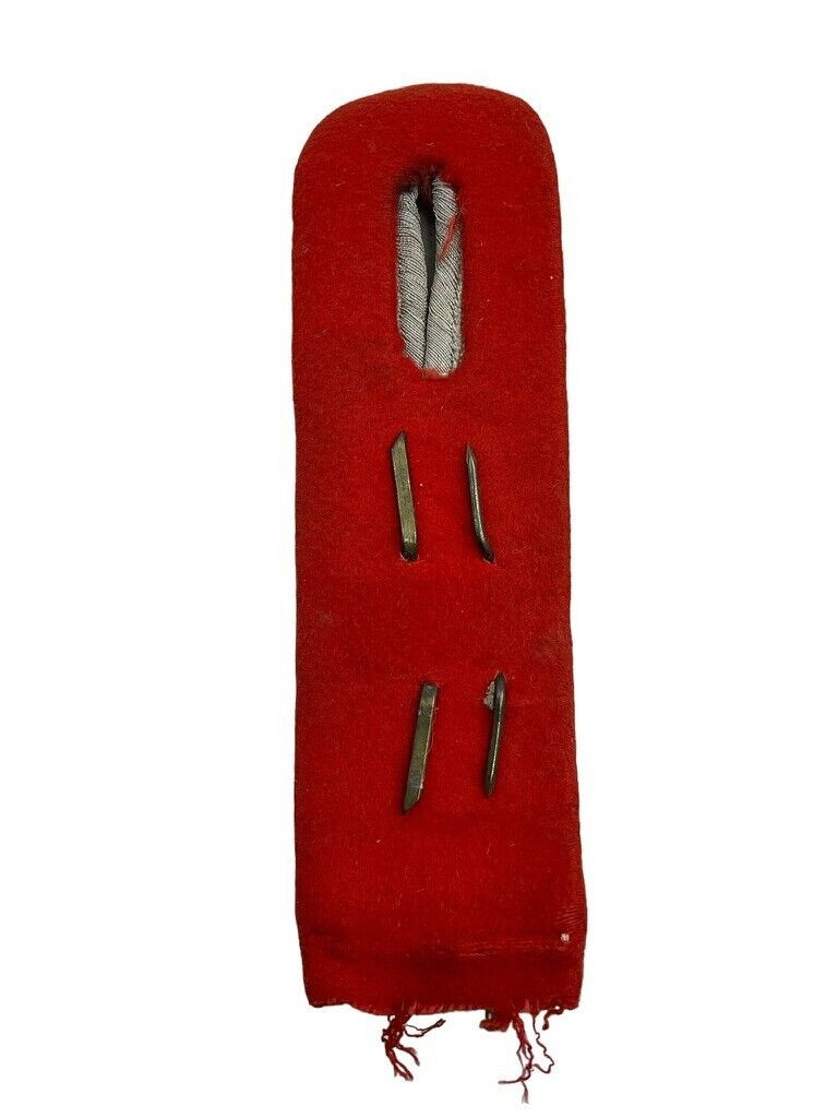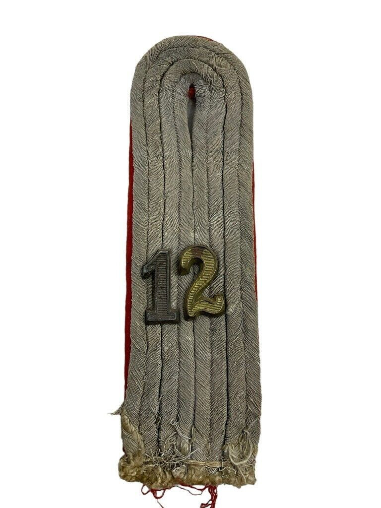 The “WW2 German Army 12th Artillery Officers Single Shoulder Board” is a distinctive piece of military insignia from the Second World War. This particular shoulder board belonged to an officer in the 12th Artillery Division of the German Army. Crafted with meticulous attention to detail, it features the characteristic braid and piping, signifying the wearer’s rank and association with the artillery. The design typically includes twisted cords, interwoven with metallic threads, and may display the unit number ’12’ prominently. These shoulder boards were a crucial part of the uniform, indicating the officer’s position and division, and are now sought-after collectibles for military historians and enthusiasts. The piece provides a tangible connection to the historical period, reflecting the organizational structure and the military aesthetics of the time. This single shoulder board represents both the disciplined craftsmanship and the complex history of the German armed forces during WWII.
