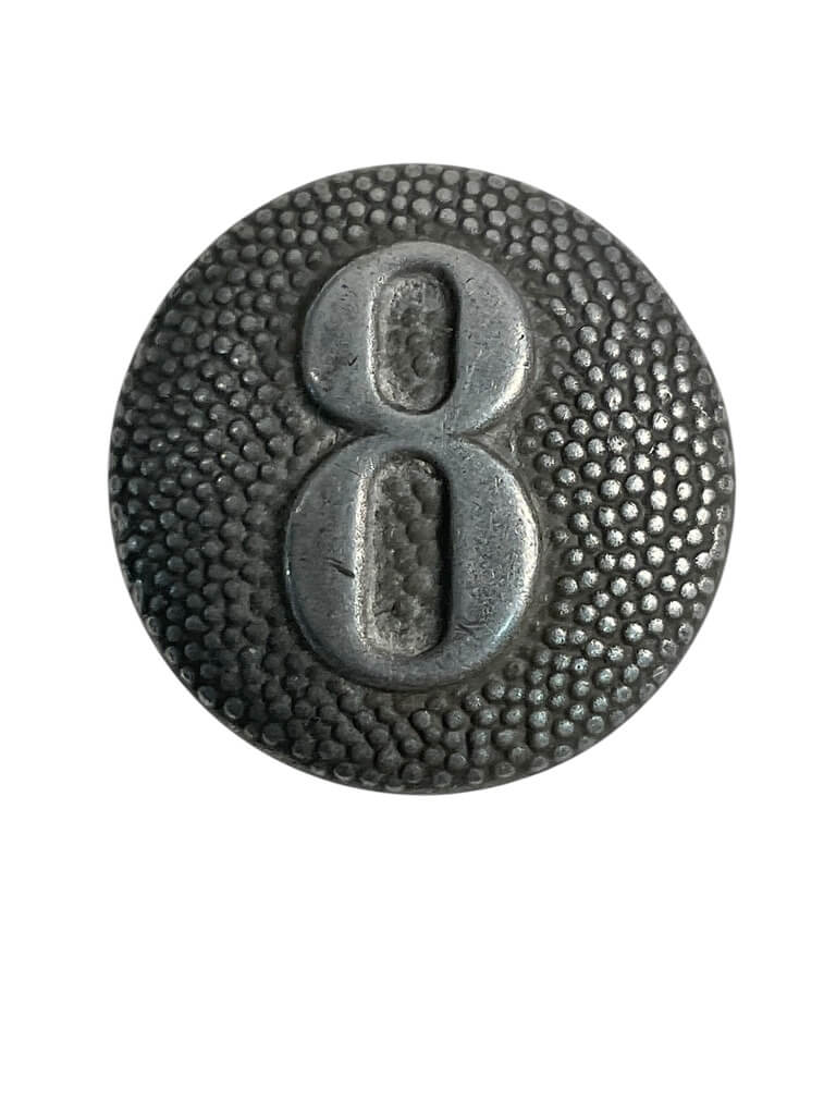 The WW2 German Army 8th Company Button is an original uniform accessory from the period of the Second World War, specifically associated with the 8th Company of the German Army (Wehrmacht Heer). These buttons were commonly used on field tunics and other military garments as part of company-specific identification. Typically crafted from metal alloy, the button features a raised numeral “8” on its surface to denote the company assignment. The reverse side usually exhibits a loop or shank for secure attachment to the garment. Such buttons were standardized within the Wehrmacht and followed specific design guidelines in terms of size and material, ensuring uniformity across different units. Items like this button provide insight into the organizational structure and identification methods used by German military forces during WW2. This artifact is suitable for collectors, historians, or museums focused on authentic military equipment from the mid-20th century European conflict.
