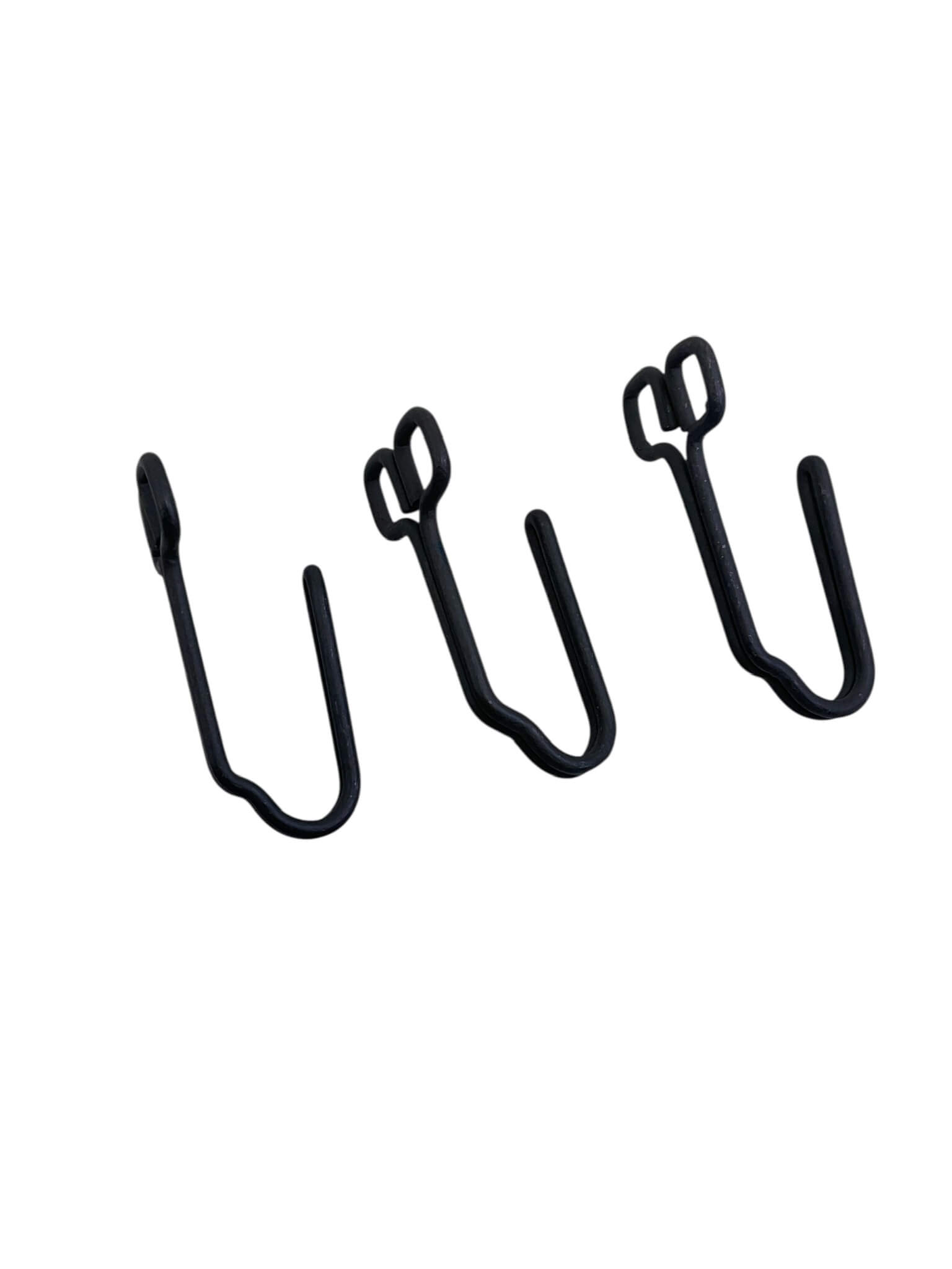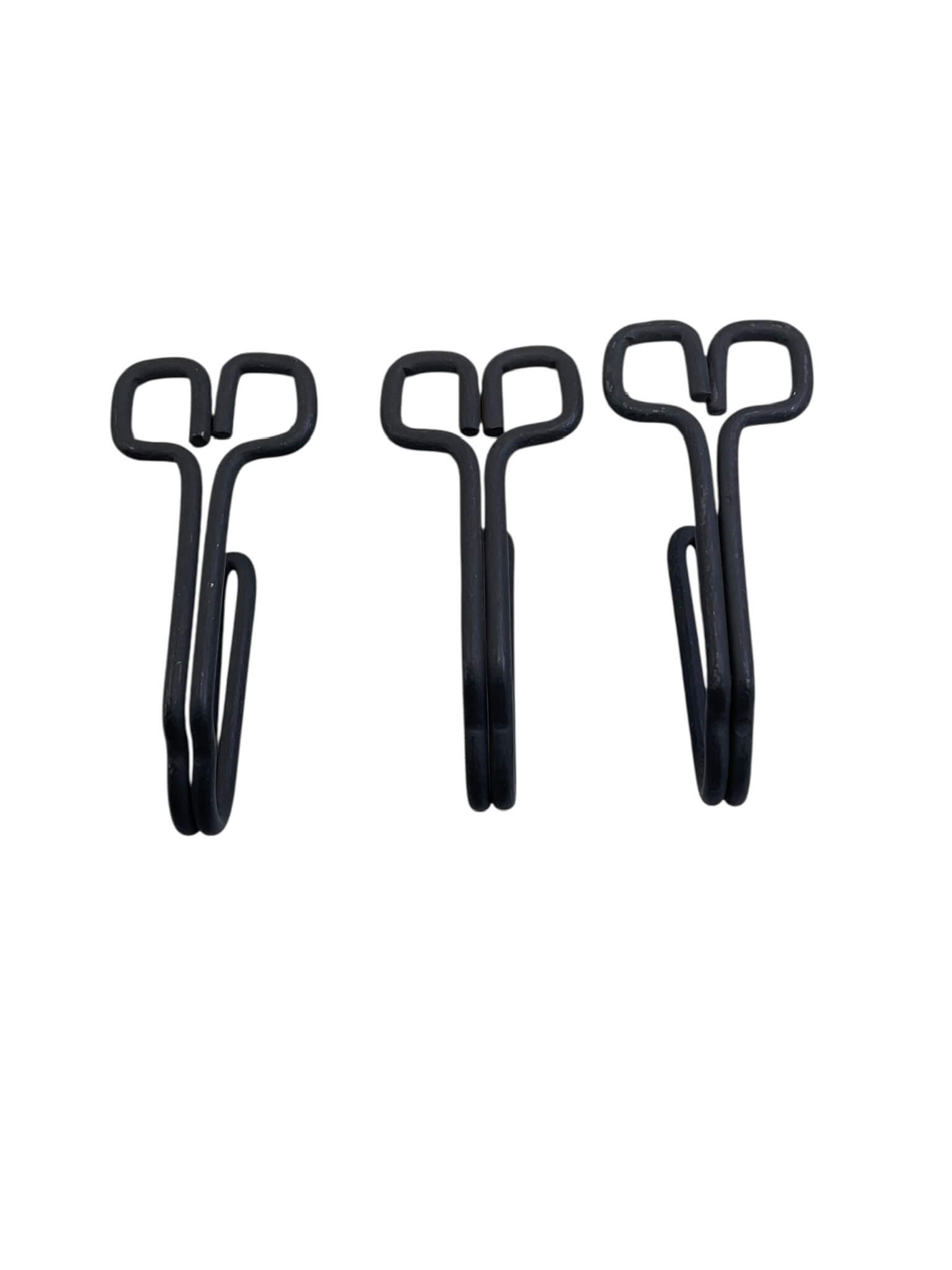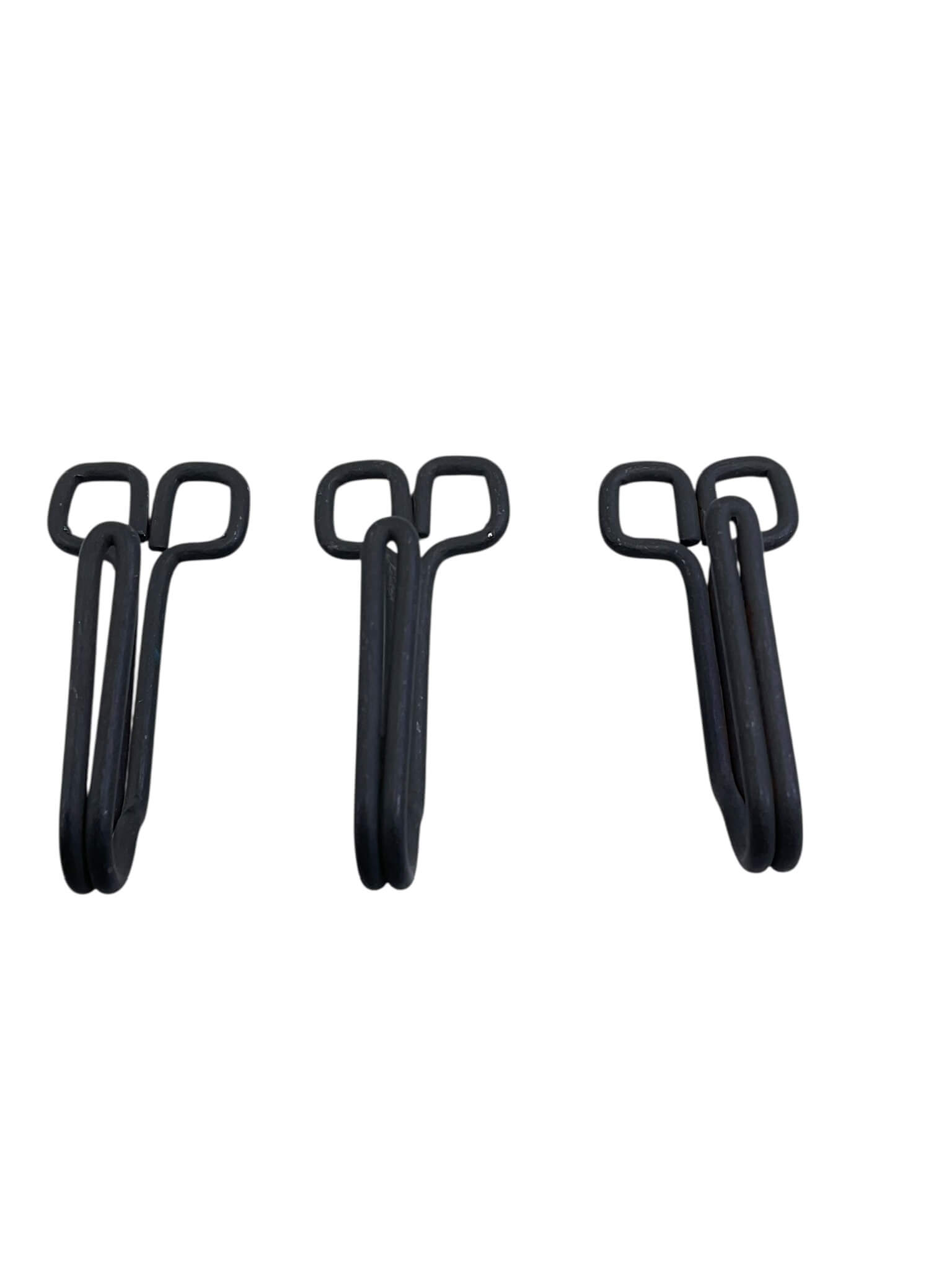 WW2 German Army Belt Hooks X 3 This set consists of three original German Army belt hooks from the Second World War period. These metal hooks were standard issue for Wehrmacht soldiers and designed for attachment to the field belt (Koppel). Their primary function was to distribute the weight of the soldier’s field equipment by suspending the load-bearing Y-straps (Koppeltragegestell) and other gear. Each hook is constructed from sturdy metal, typically steel or aluminum, and features the characteristic double-prong design that attaches securely to the belt. The finish and patina on these items vary, reflecting use and age consistent with military equipment from the 1939–1945 period. These hooks served as essential components of the German soldier’s personal equipment, contributing to the practical and ergonomic design of wartime uniforms. Set includes three individual belt hooks suitable for collection or study of military equipment from this era.