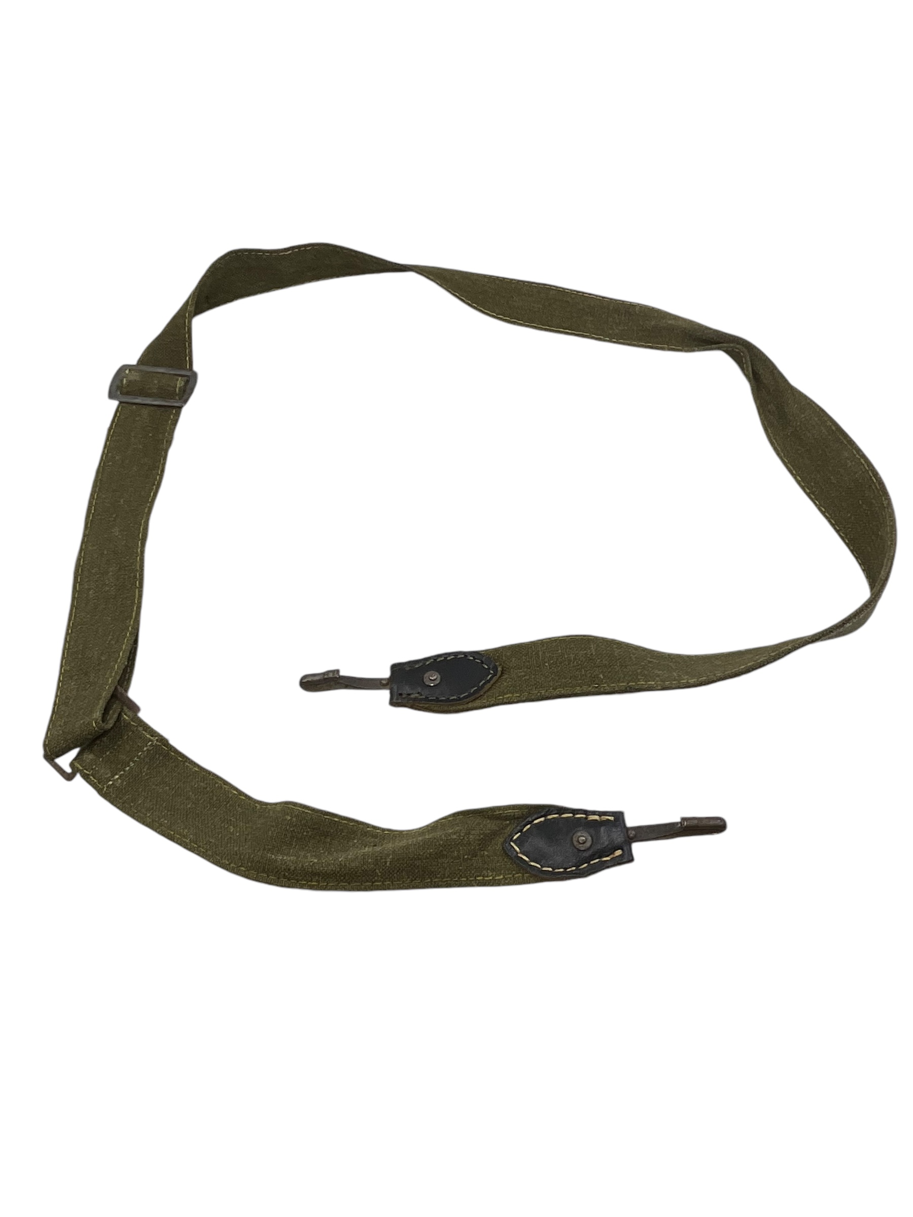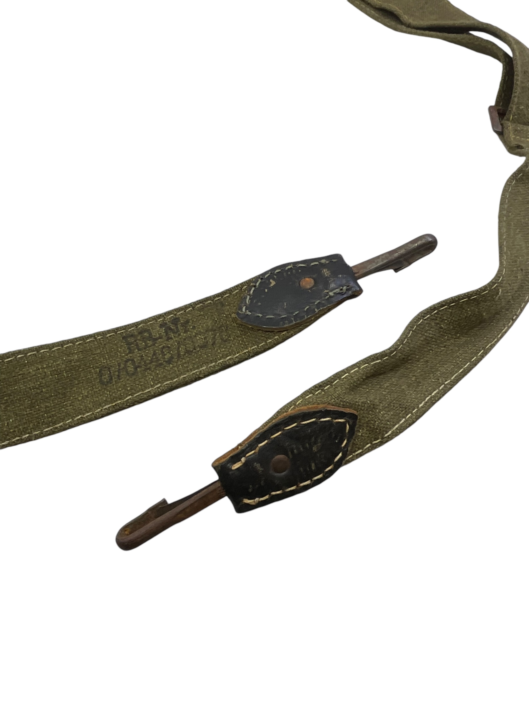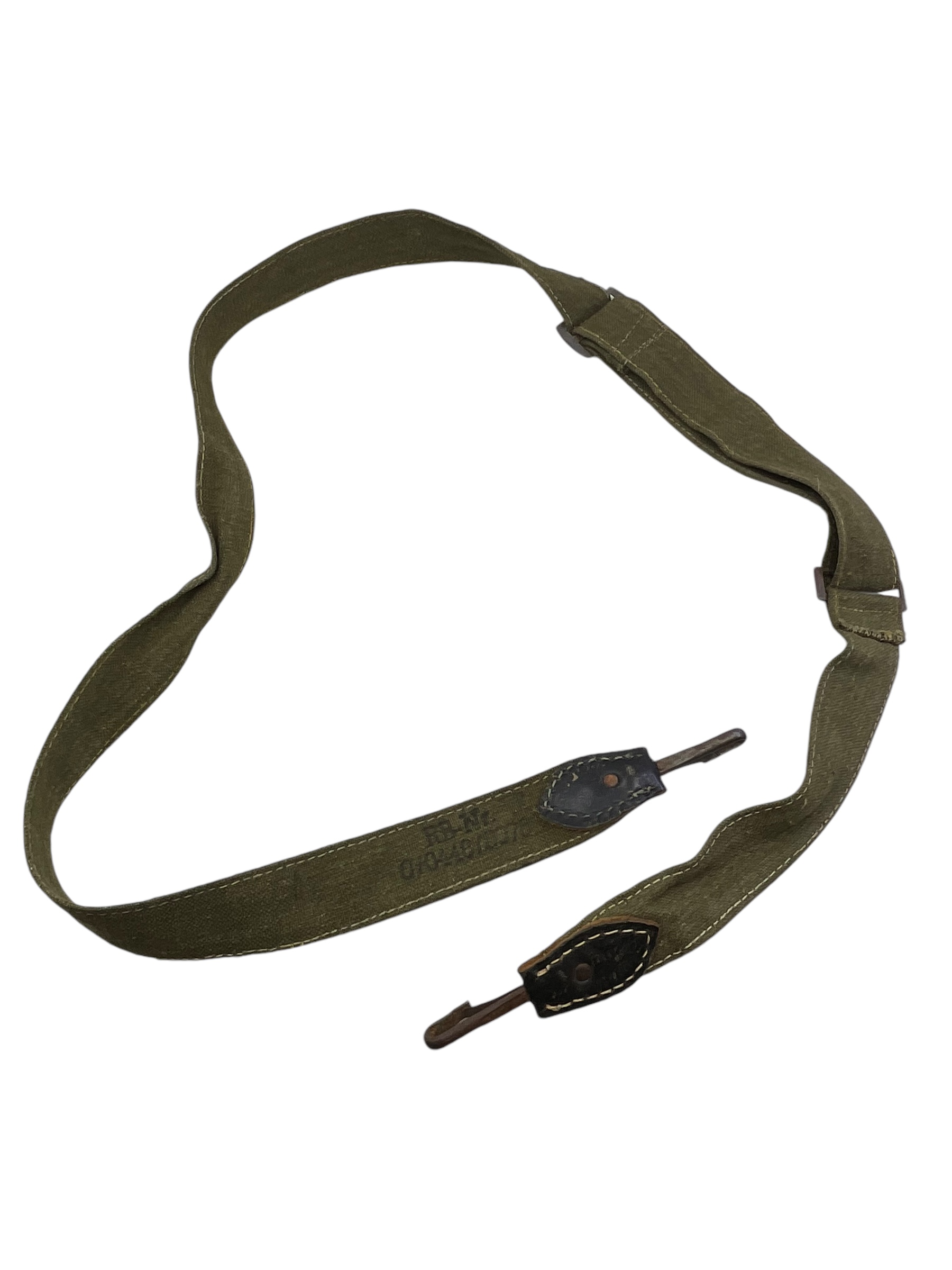 This WW2 German Army Bread Bag Strap RBN #’d is a fascinating piece of military history. It is an authentic item that was used by German soldiers during the World War II era. The strap’s primary function was to secure the bread bag, a vital component of a soldier’s field gear, which contained their rations and personal items. Made from sturdy canvas material, it features the Reichsbetriebsnummer (RBN), a German factory control number, indicating its genuine origin. This strap is not merely a piece of military surplus, but a tangible connection to a pivotal period in world history. Its robust design and historical significance make it an ideal item for collectors, history enthusiasts, or those interested in military memorabilia.