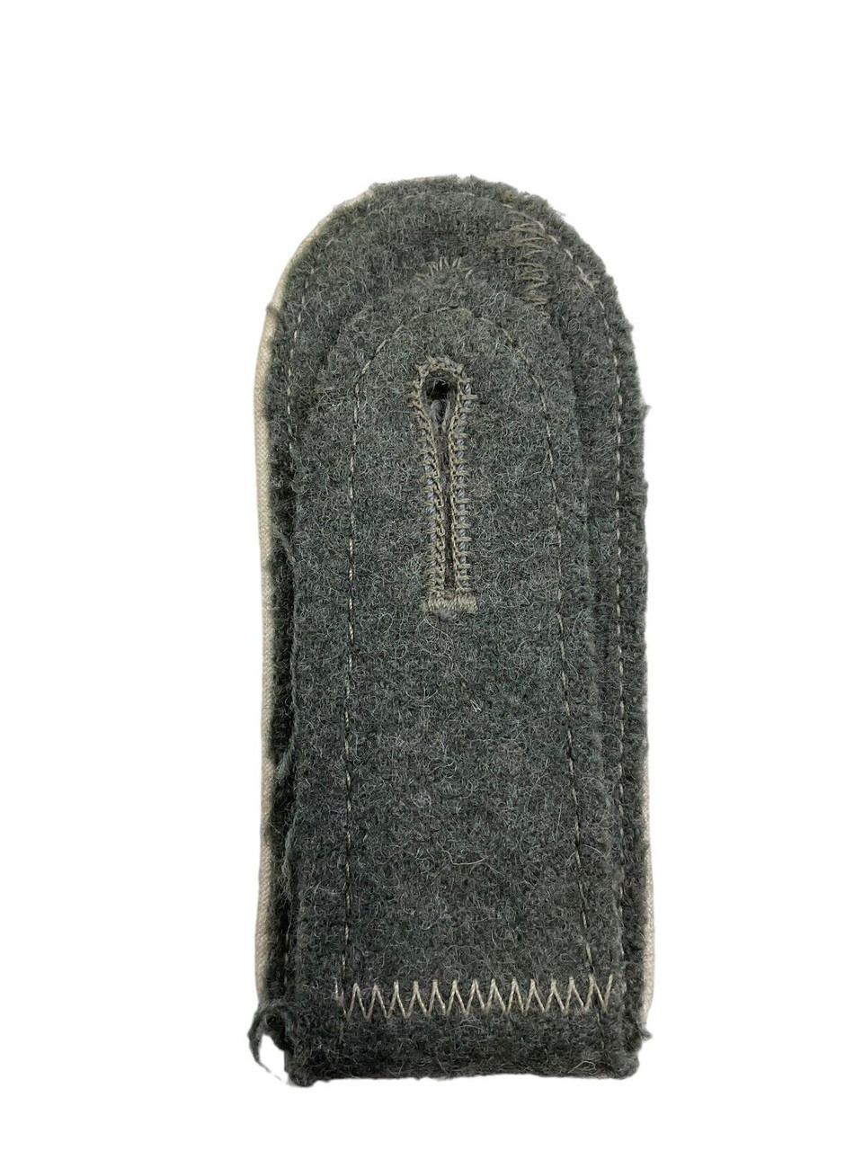This authentic WW2 German Army Infantry Shoulder Board Single 1 is a remarkable piece of military history, representing the standard insignia worn by infantry soldiers during the Second World War. Crafted meticulously, the shoulder board features traditional elements such as intertwined braid patterns and a single pip, indicative of the wearer’s rank within the German Army. It embodies significant historical value, offering a tangible connection to the era and the soldiers who served. The shoulder board’s materials show the quality and attention to detail characteristic of military regalia from the period. This unique collector’s item is perfect for history enthusiasts, military memorabilia collectors, or educators looking to illustrate the details of WWII uniforms. Its condition and authenticity make it a standout piece in any collection, providing a genuine glimpse into the past and a deeper understanding of military hierarchy and insignia during one of the most pivotal conflicts in history.