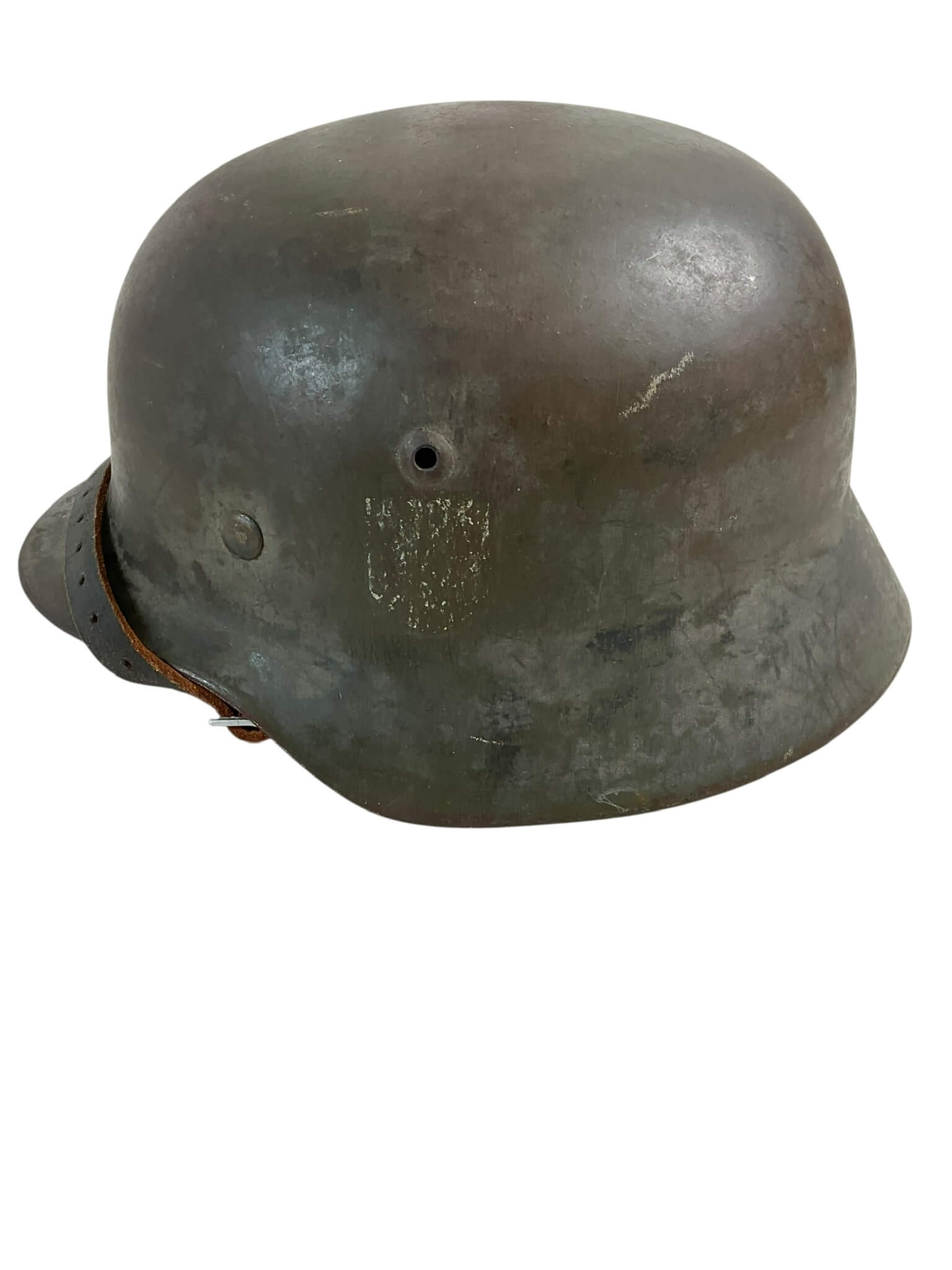 The WW2 German Army M35 Steel Helmet NS68 Lot No E22 is a robust piece of military history. Used extensively by the German Army during World War II, the M35 model offered superior protection and became emblematic of the regime’s forces. This NS68 version is sized for medium to large heads, bearing the Lot No E22 as a mark of authenticity. It is composed of steel and painted a matte gray, in line with the non-reflective finishes commonly used to avoid detection. Its distinctively flared rim and vent holes are characteristic of the M35 design, setting it apart from the earlier WW1 models. Despite visible wear and tear, it remains relatively well-preserved, enhancing its value as a collector’s item. The helmet does not come with an inner lining or chinstrap, signalling the pure emphasis on the exterior shell. Ideal for those interested in military memorabilia, it provides a tangible link to a pivotal period in world history.
