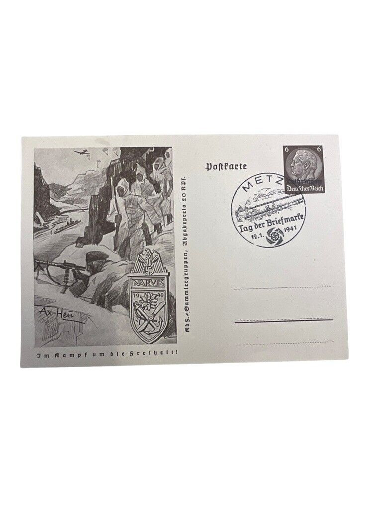 This vintage ‘WW2 German Army Mountain Troops Narvik Postcard’ offers a glimpse into the historical significance of the elite Gebirgsjäger units during the Second World War. Featuring robust and resilient mountain soldiers who played a crucial role in the Nazi invasion and occupation of Narvik, Norway, in 1940, this postcard is a testament to their strategic importance in warfare. The image captures the rugged terrain and harsh conditions these troops braved, highlighting their adaptability and endurance. Whether you are a history enthusiast, a collector of military memorabilia, or someone fascinated by World War II, this postcard serves as a poignant reminder of the complexities and human elements of war. Its detail and authenticity make it a valuable piece for anyone interested in wartime history and the formidable courage of the soldiers who fought in the challenging landscapes of Narvik.