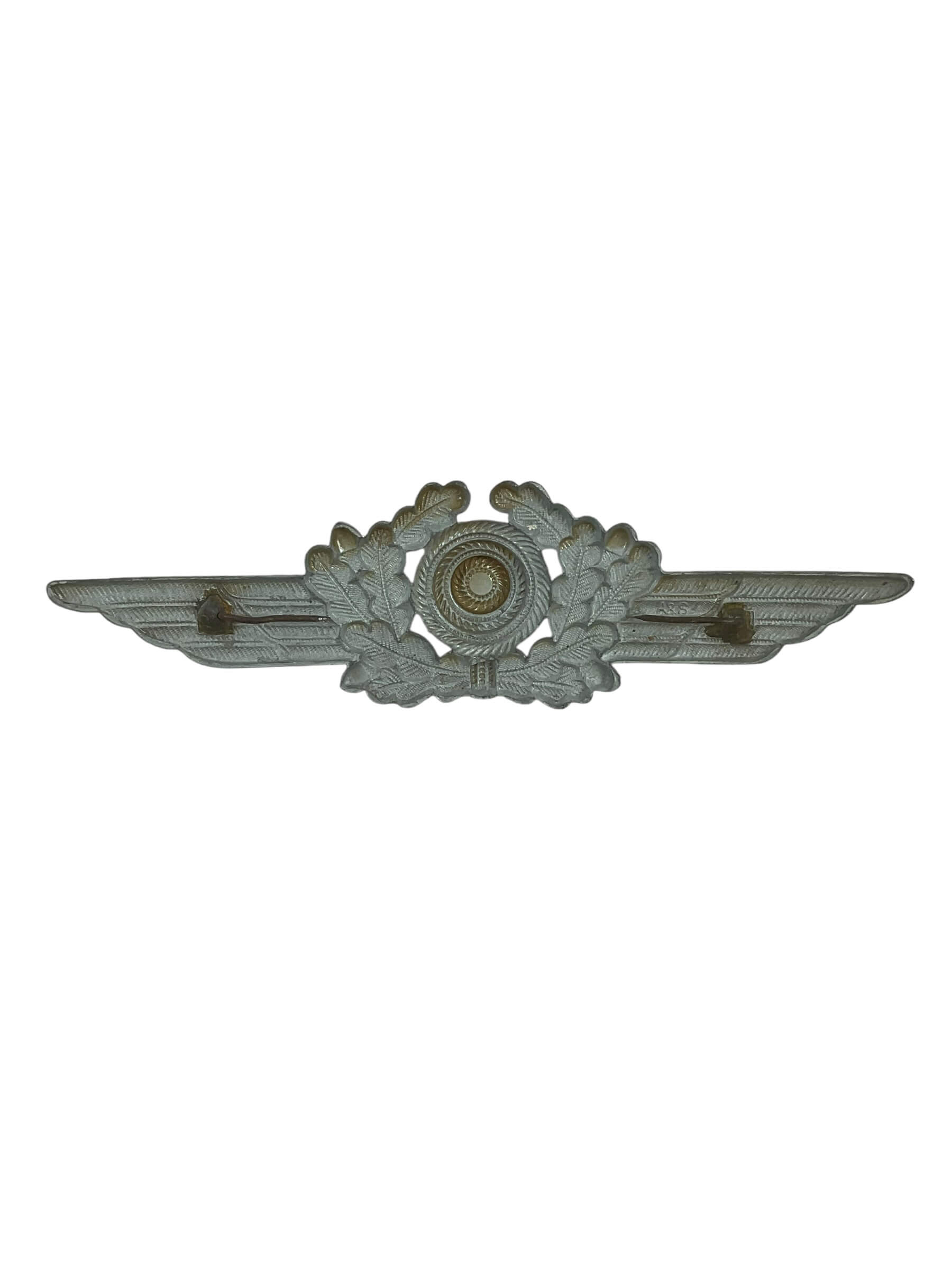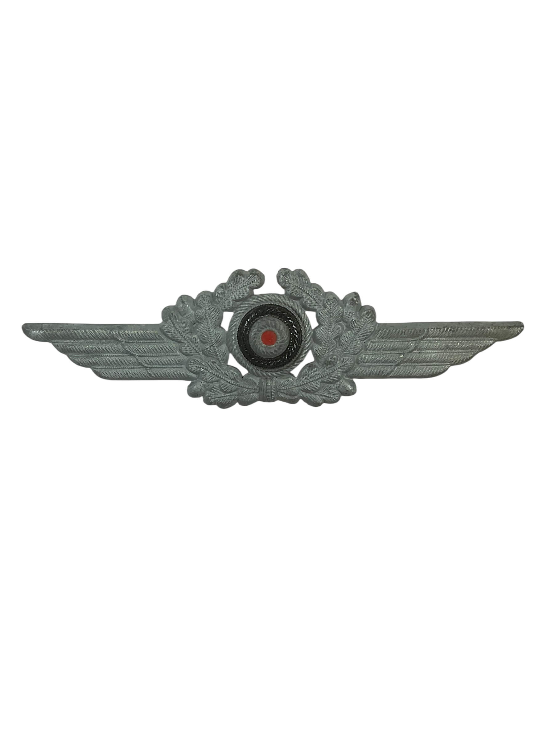 The WW2 German Army Peak Cap Wreath is an insignia component used on the peaked caps (Schirmmütze) worn by personnel of the German Army (Heer) during the Second World War. The wreath, typically crafted from metal or embroidered in aluminum or silver-colored thread, encircles a central cockade on the front of the cap. Its design features stylized oak leaves, symbolizing strength and endurance. The cap wreath served as a standard element of uniform insignia, identifying the wearer as a member of the Heer. Variations in manufacturing details occurred due to different producers and wartime material shortages, but the essential motif remained consistent throughout the conflict. This item is of interest to collectors, historians, and researchers studying military insignia, uniform regulations, and the material culture of WW2-era armed forces. The cap wreath is an example of the formalized insignia used within the German military during this period.