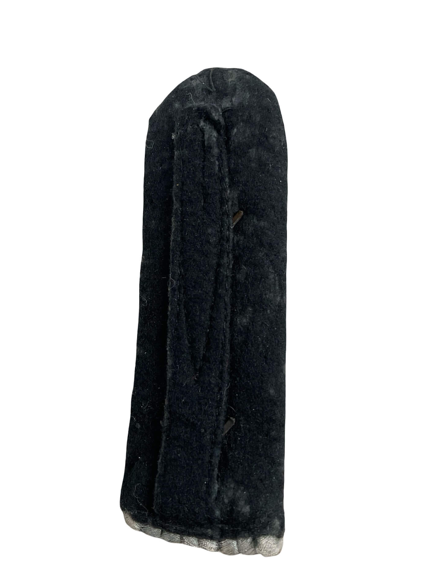 The WW2 German Army Pioneer Officer’s Shoulder Board Insignia, Single, represents the rank distinction used by officers serving in the German military engineering corps, known as Pioniere, during the Second World War. This shoulder board is constructed with interwoven silver and black cords, signifying officer status and branch association respectively. Pioneer troops were responsible for tasks such as bridge construction, demolitions, and fortification works. Typically, the design of the shoulder board included looped construction over a stiff base with black underlay, a color designator for engineer units. Officer shoulder boards were worn on service and dress uniforms, affixed to the shoulder through sewn-in or slip-on attachment methods. The insignia formed a critical part of the uniform, enabling quick identification of both branch and rank within the Wehrmacht structure. This single example is intended for display, study, or collection by individuals interested in military uniforms and insignia from the World War II era.