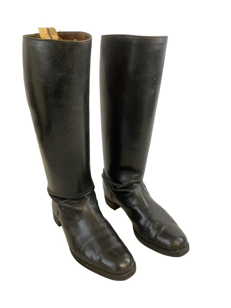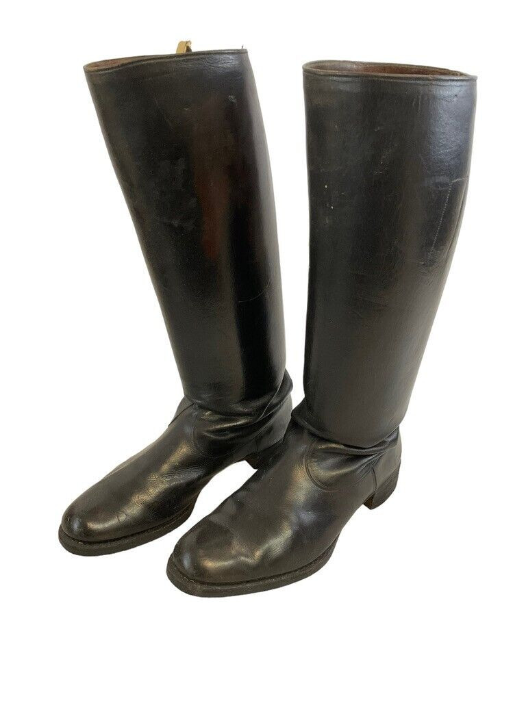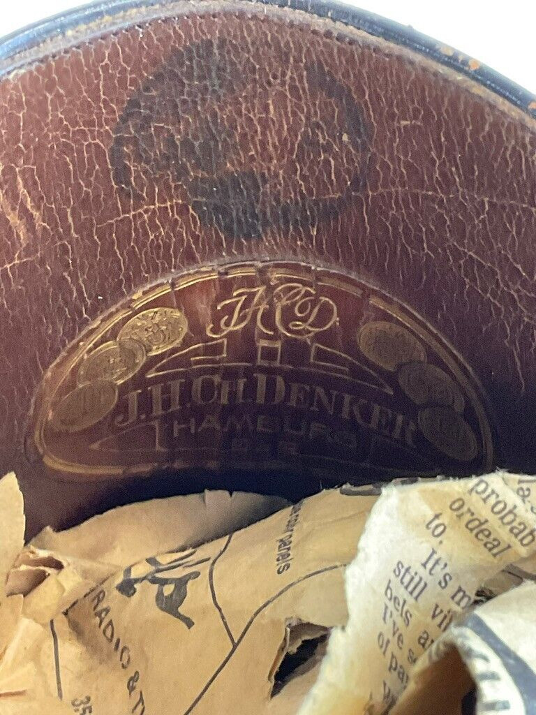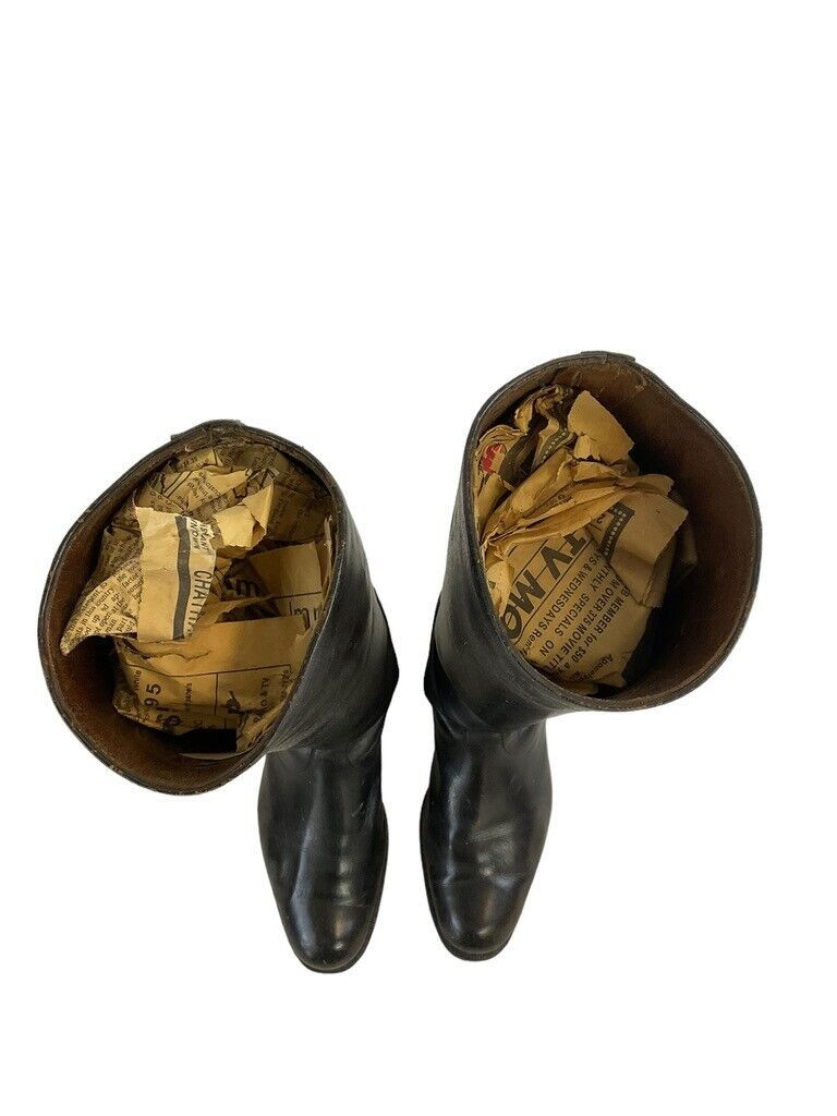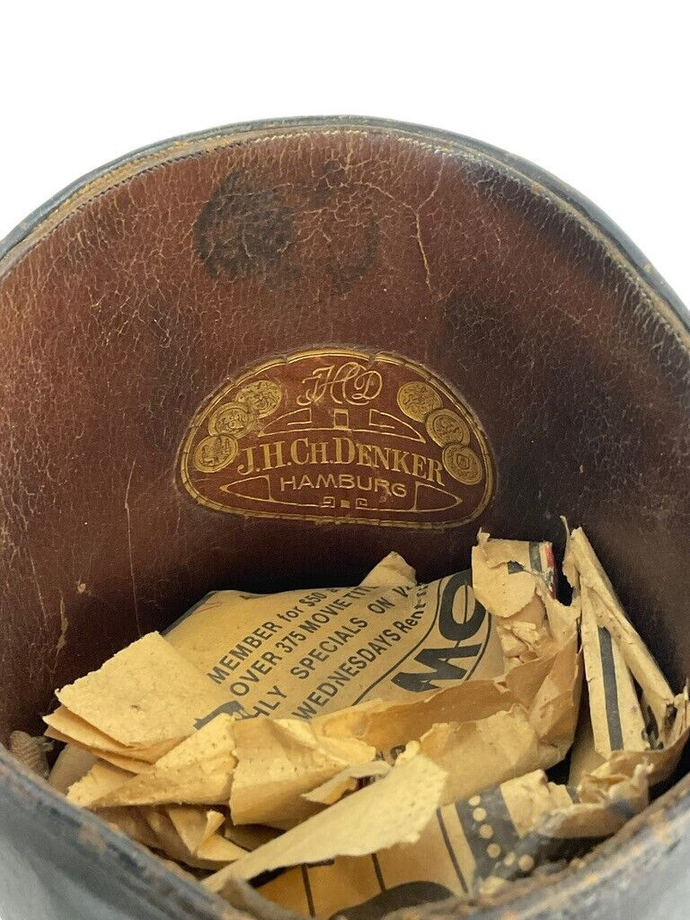 WW2 German Black Leather Officers Boots Maker Marked Hamburg