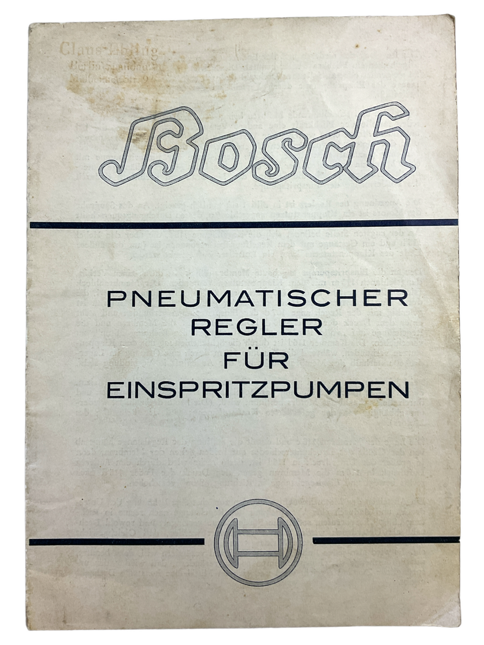 WW2 German Bosch Pneumatic Regulator for Vehicle Pump GERMAN TEXT Reference Book