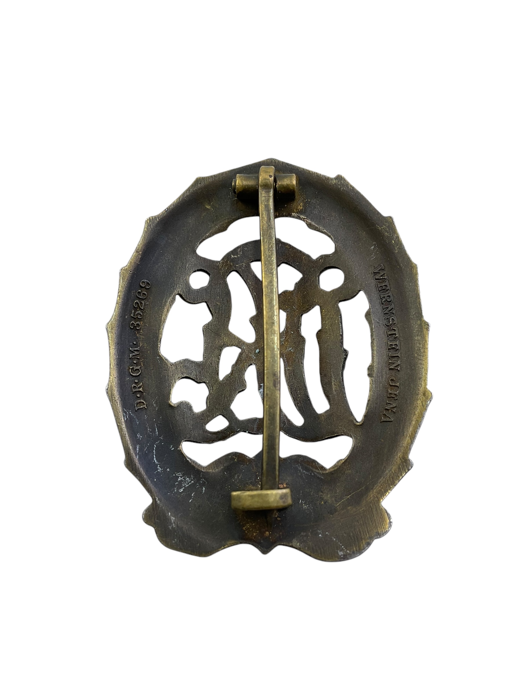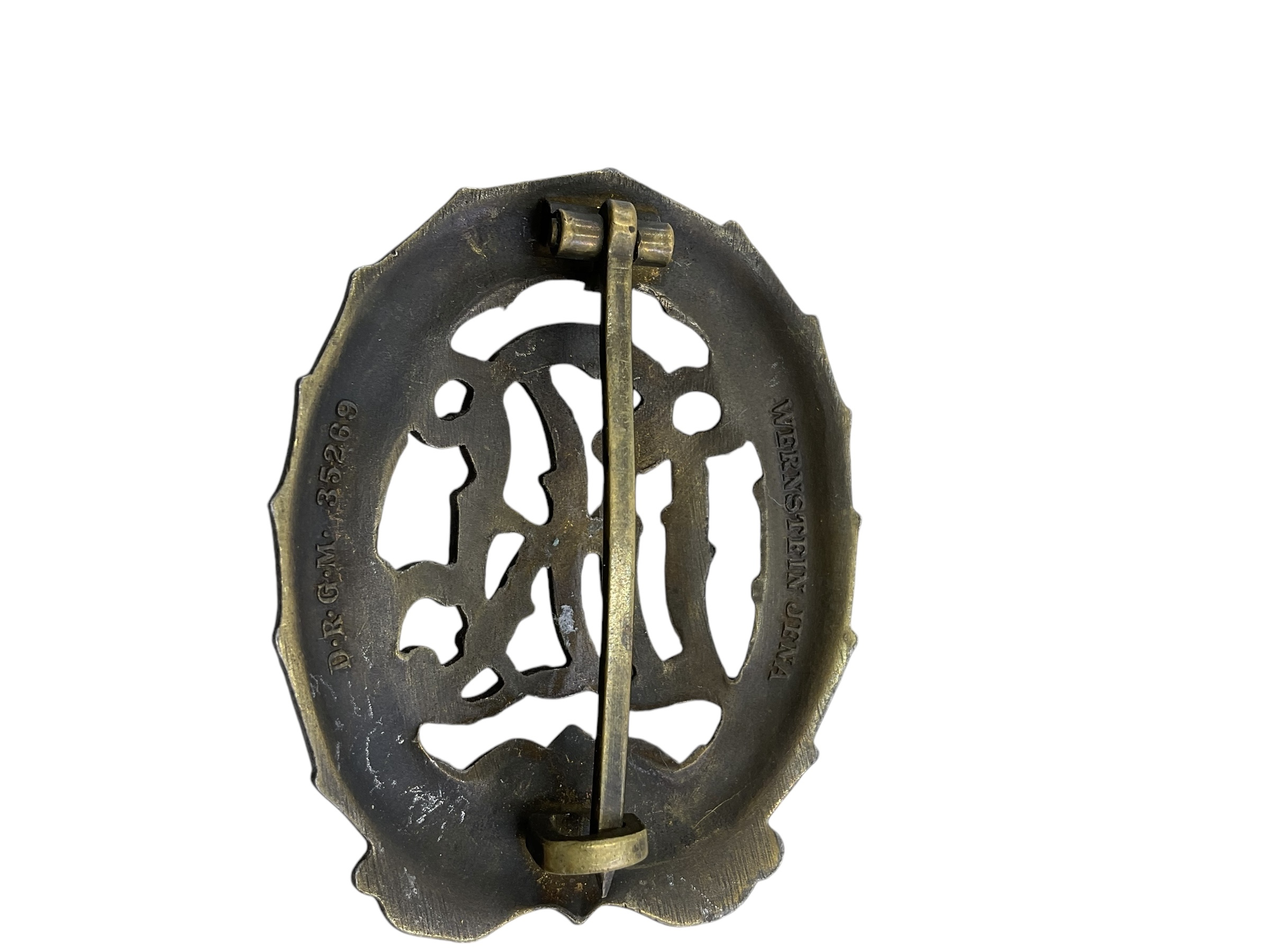 WW2 German DRL Sports Badge In Bronze Maker Marked Wernstein Jena
