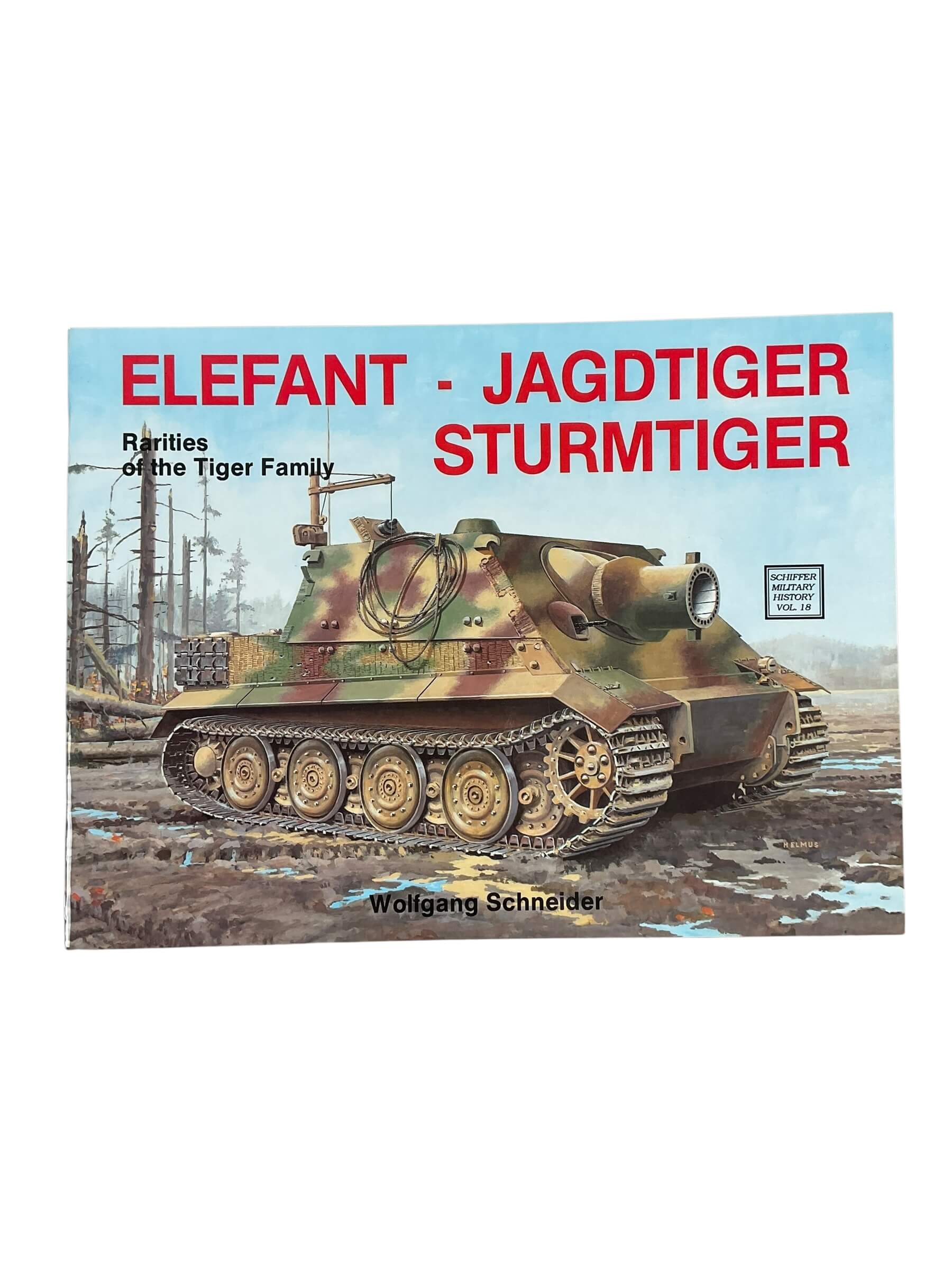 The WW2 German Elefant Jagdtiger Sturmtiger Schiffer No 18 is a used softcover reference book. This book features detailed information on World War II German heavy tank destroyers, specifically the Elefant, Jagdtiger, and Sturmtiger. The Schiffer edition provides a reliable source of historical war data for enthusiasts and researchers alike.