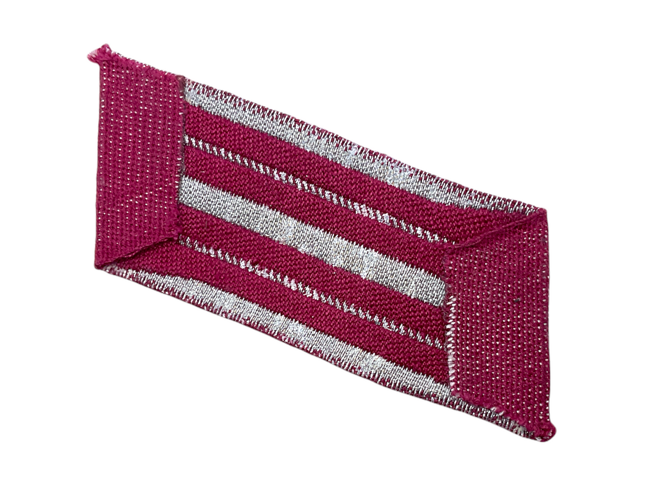 This World War II German Fire Service collar tab is a historical artifact that exemplifies the intricate craftsmanship and meticulous design of wartime regalia. It features a single Bevo woven construction, which ensures durability and precision in its pattern. The silver thread used in the weaving offers a striking contrast against the backdrop, highlighting the intricate detailing synonymous with German uniform accessories of the era. This collar tab would have been worn by members of the German Fire Service, adding a distinctive and authoritative touch to their uniforms. The historical significance, coupled with the fine craftsmanship, makes this piece a valuable collector’s item for enthusiasts of military memorabilia and historians alike. Whether displayed as part of a larger collection or as a standalone piece, this collar tab provides a tangible connection to the past and serves as a poignant reminder of the individuals who served during a tumultuous period in history.