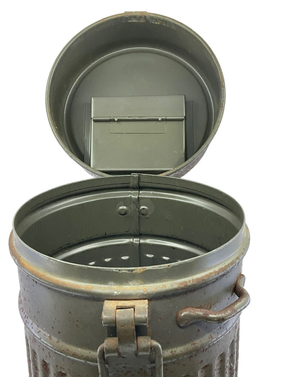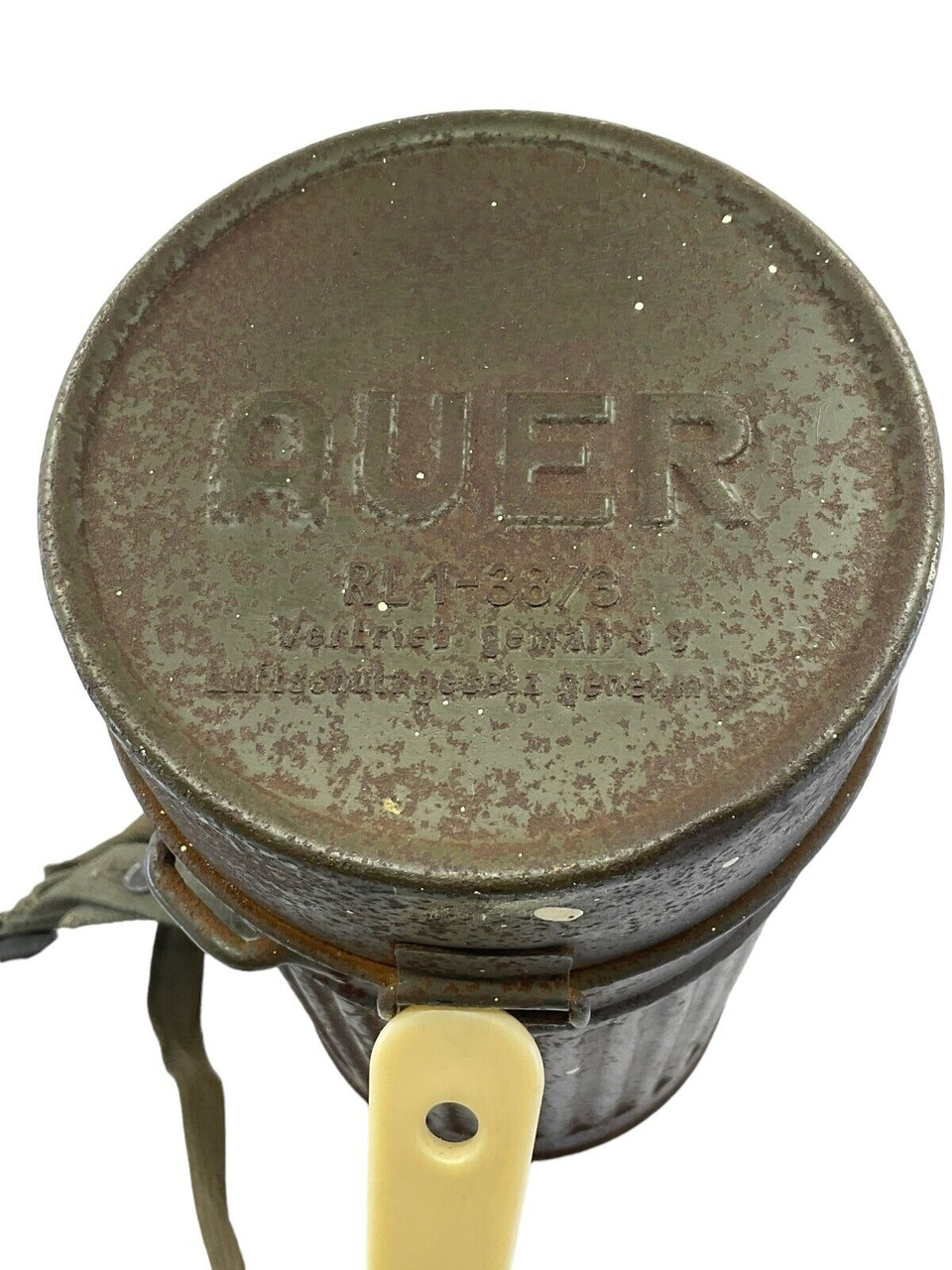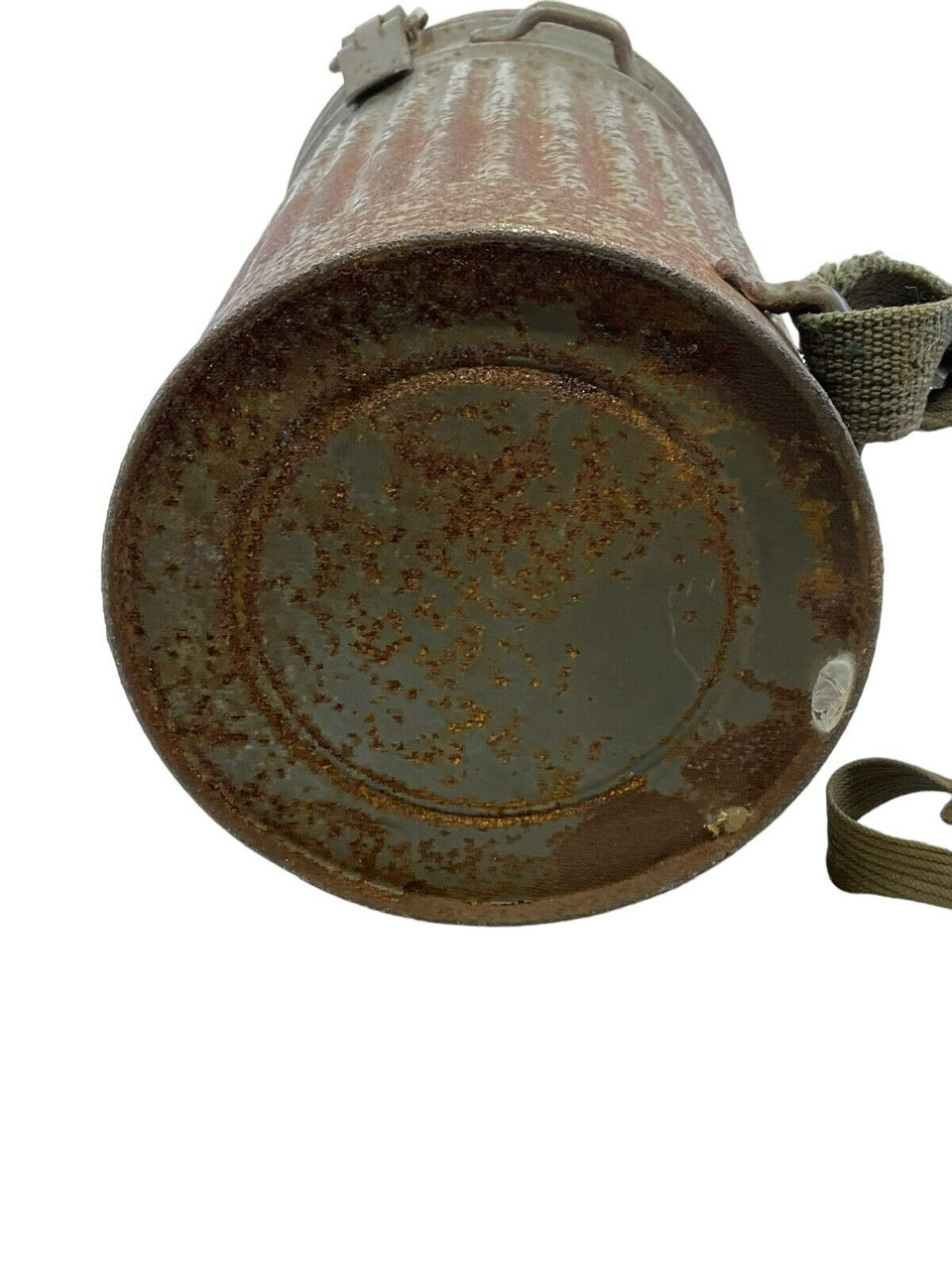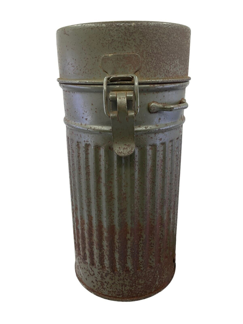 The WW2 German Gas Mask Tin Auer, now available without its original contents, is a poignant piece of military history. This tin, once housing a crucial protective gas mask, exemplifies the design and practicality of wartime equipment used by German soldiers during World War II. Crafted from sturdy metal, it features the typical cylindrical shape with secure clasps and a carrying strap, ensuring it would have been easy to transport during the chaos of battle. Its wear and patina speak volumes about its journey through time, making it a tangible link to the past. Although the gas mask itself is no longer included, the tin serves as an evocative relic for collectors, historians, or enthusiasts of military memorabilia, offering a unique glimpse into the everyday lives of those who served on the front lines. Perfect for display or study, this empty tin continues to tell the story of its era.
