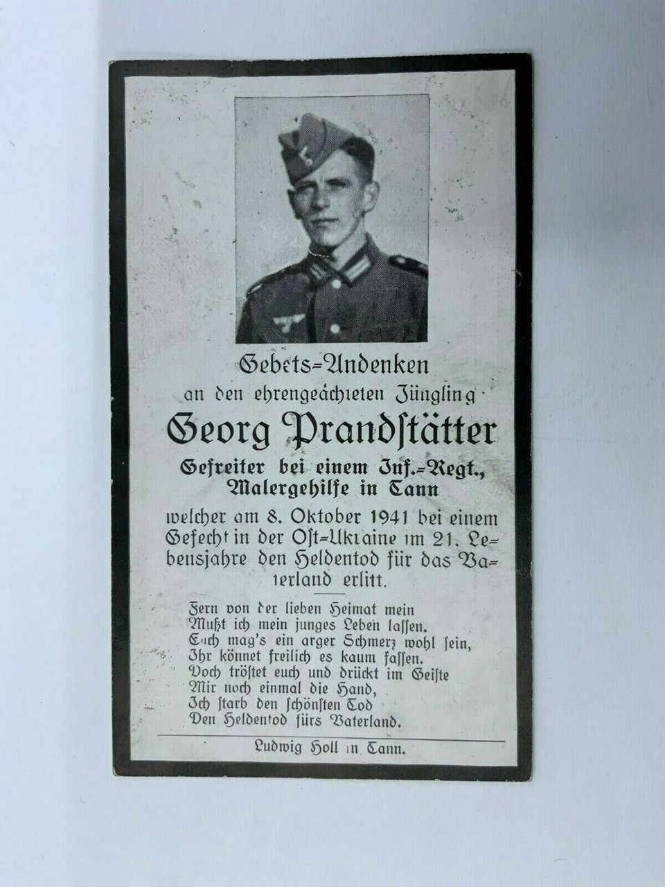 WW2 German Georg Prandstatter Infantry Regiment Death Card