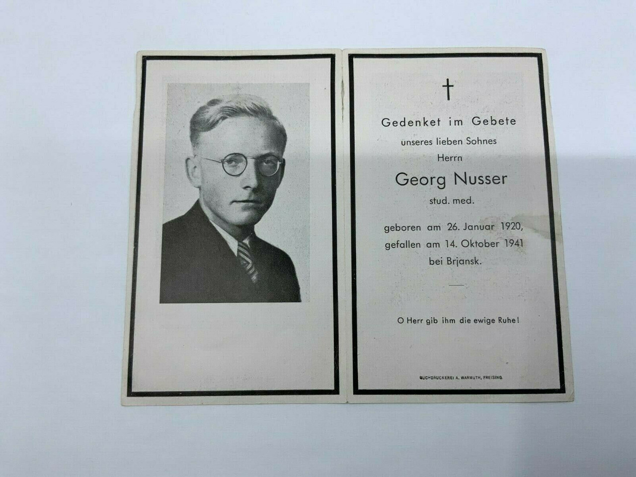 WW2 German George Nusser Infantry Regiment Death Card